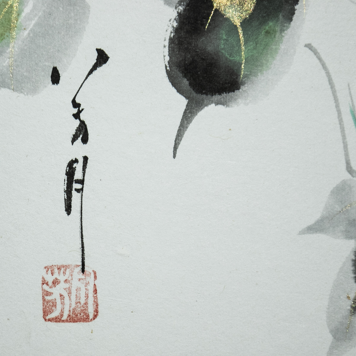 色紙ー2133 神保芳月 朝顔 日本画家【真作】