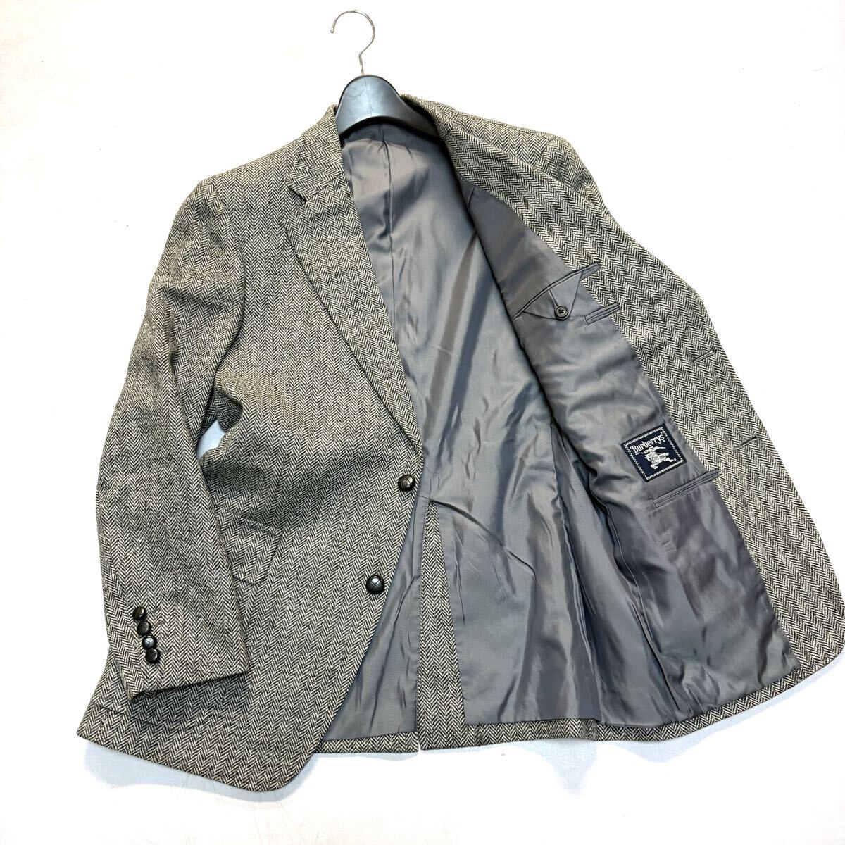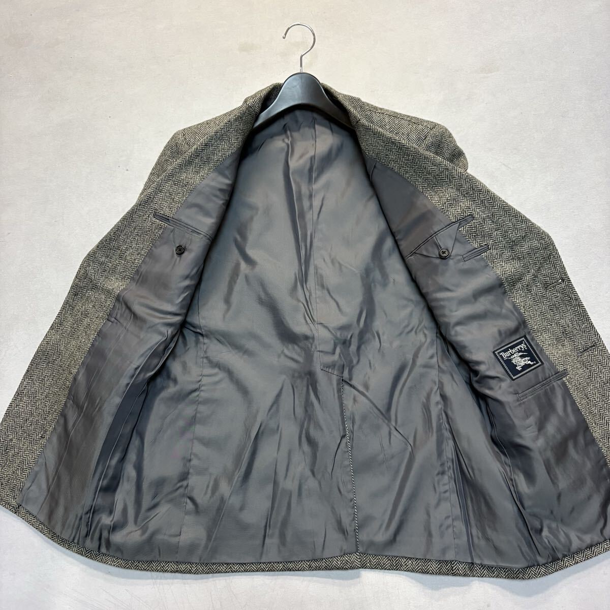 B ■ 高級感溢れる!! '洗練されたデザイン' BURBERRYS オールドバーバリー WOOL混 ヘリンボーン柄 テーラードジャケット AB6 アウター 古着