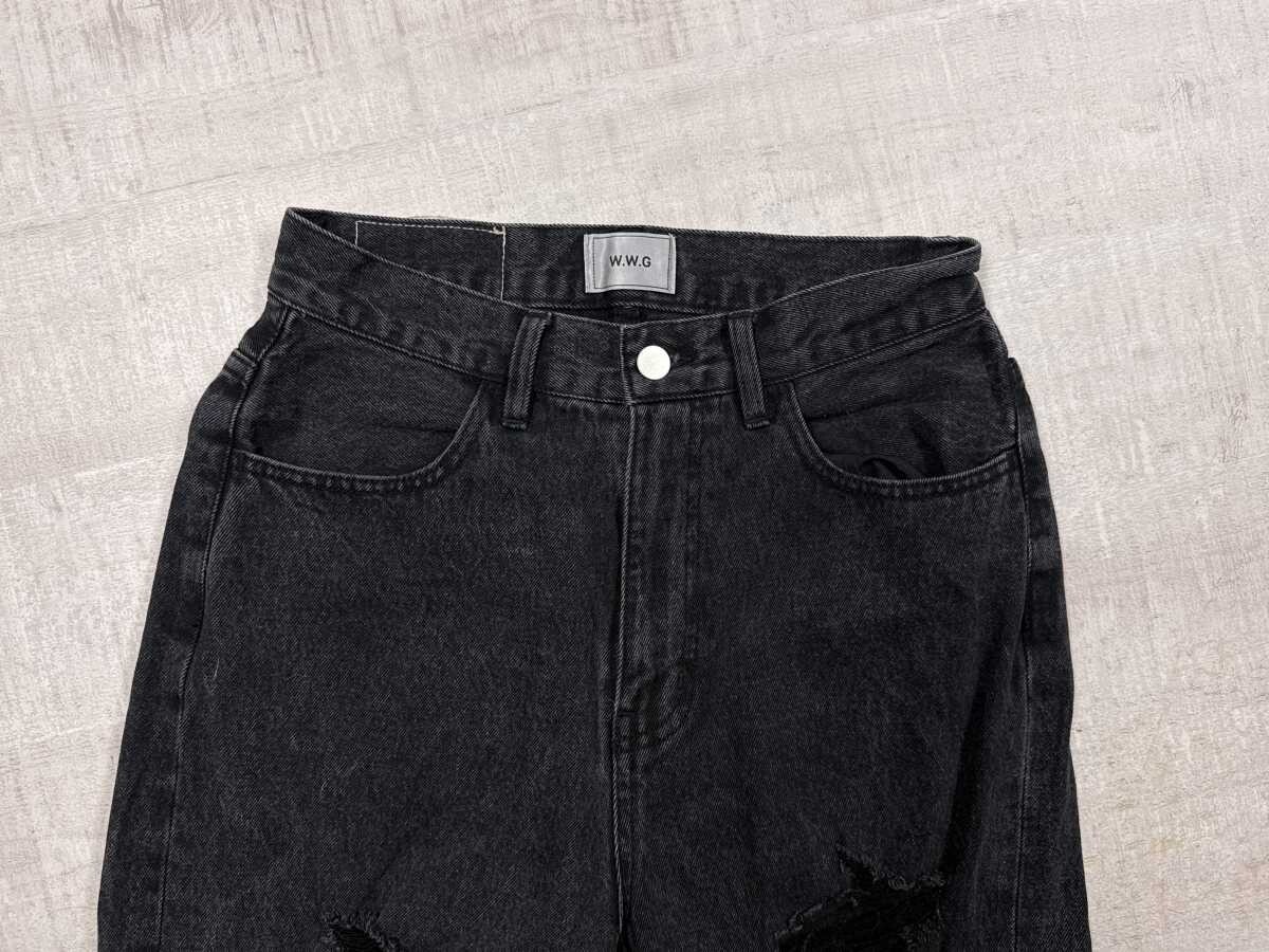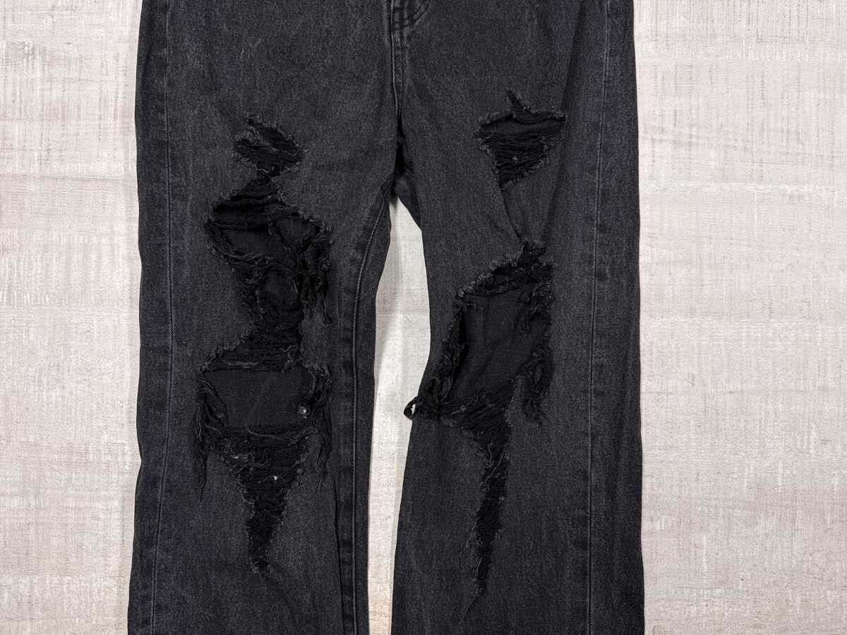 フーズフーギャラリー WHO’S WHO gallery グランジ ストリート ダメージ加工 ストレート ブラックデニム パンツ ジーンズ レディース S 黒です。