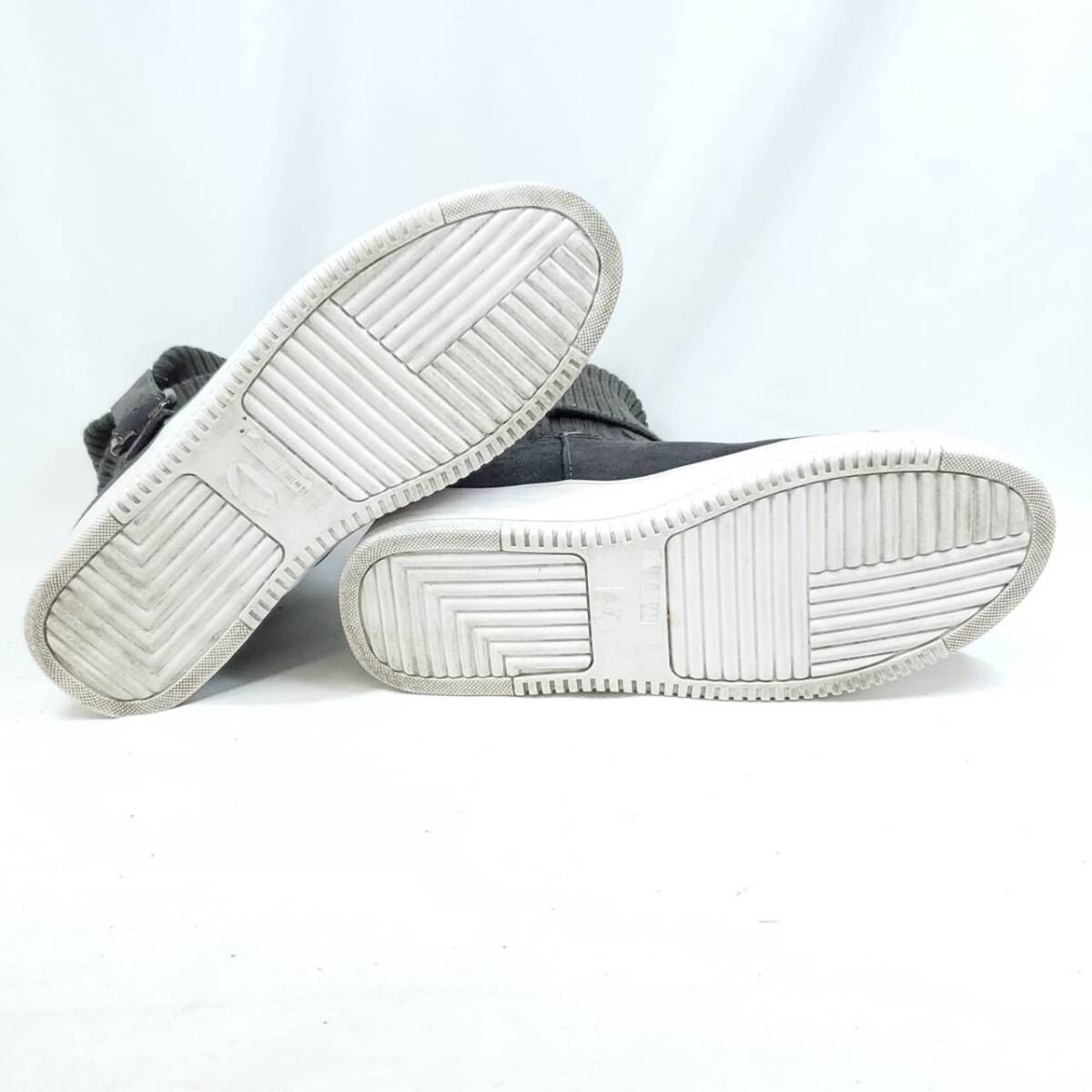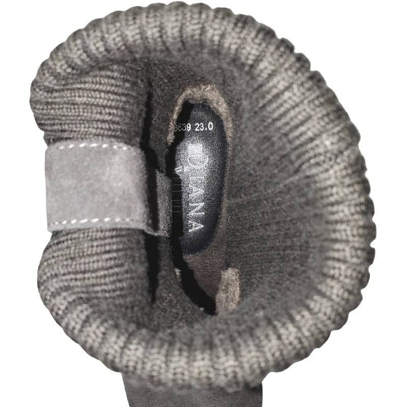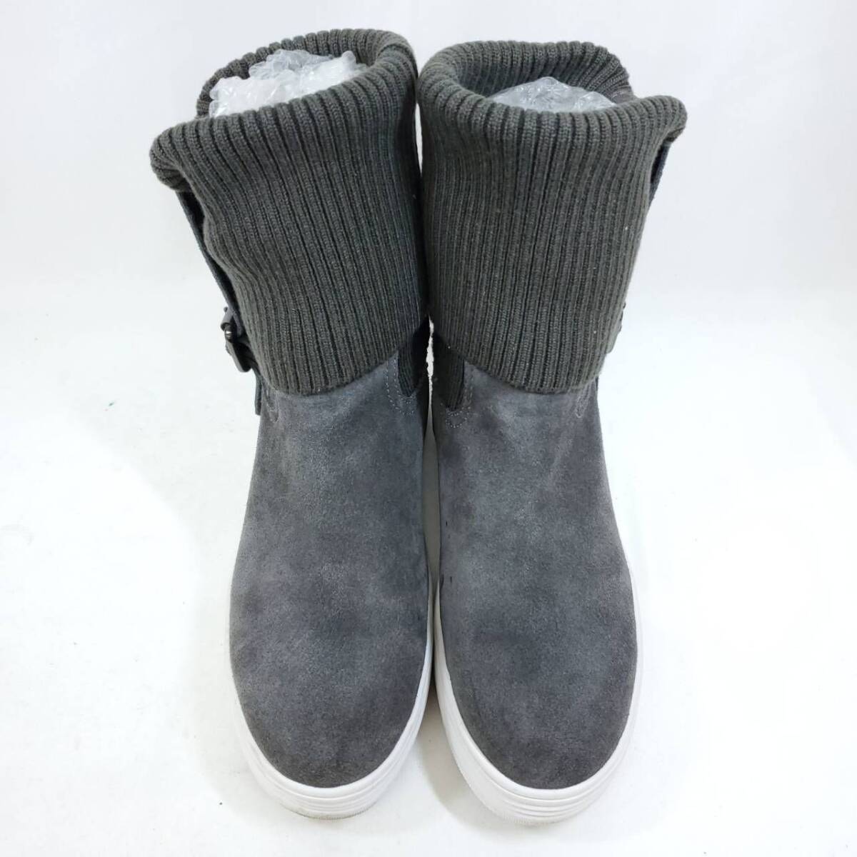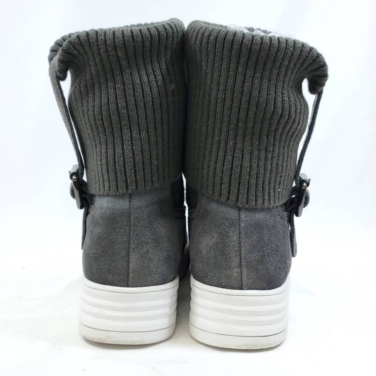 グレーのスエード素材とリブニットの異素材ミックスが、とってもおしゃれ。クッション性のある厚底ソールで歩きやすさ抜群。
