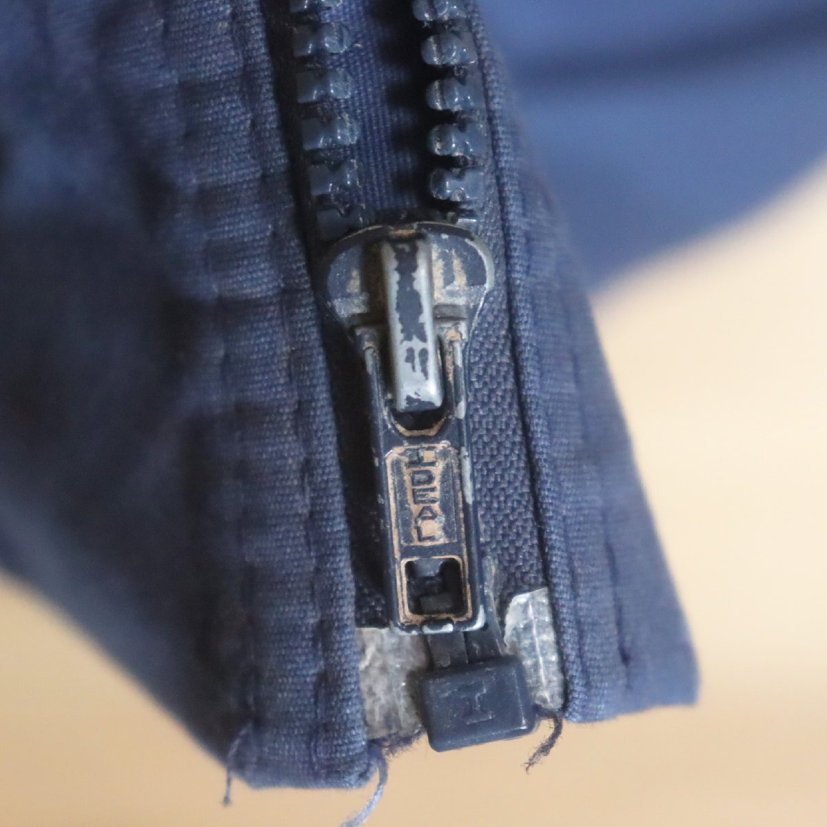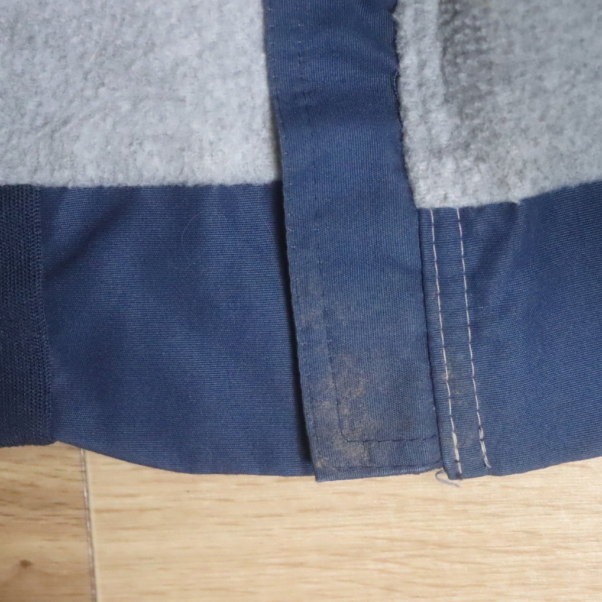 中古品です。使用感があります。前裾と裾裏に薄汚れ、袖先に擦れ、右ポケット付近に擦れ、裾リブに糸ひきがあります。