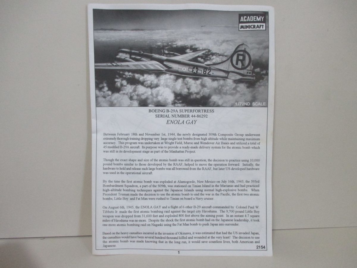 P102312K 未組立 アカデミーACADEMY 1/72 ボーイング B-29A スーパーフォートレス エノラ・ゲイ BOEING SUPERFORTRESS ENOLA GAY◆1024