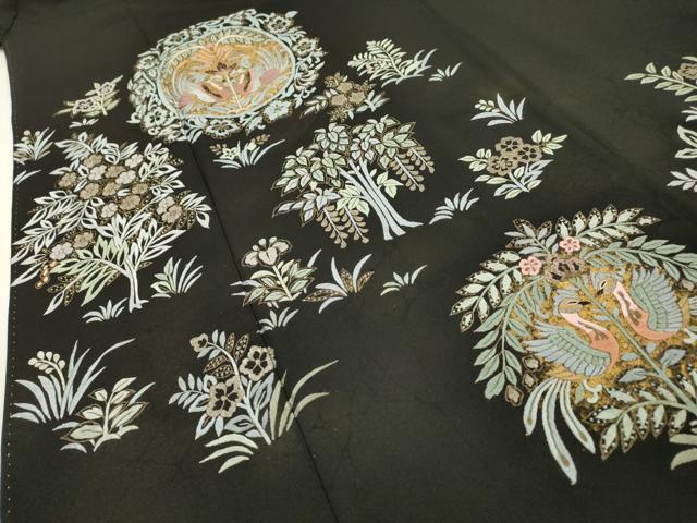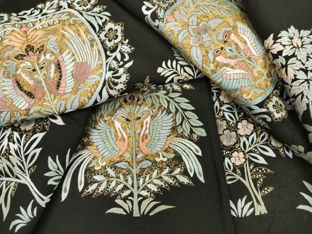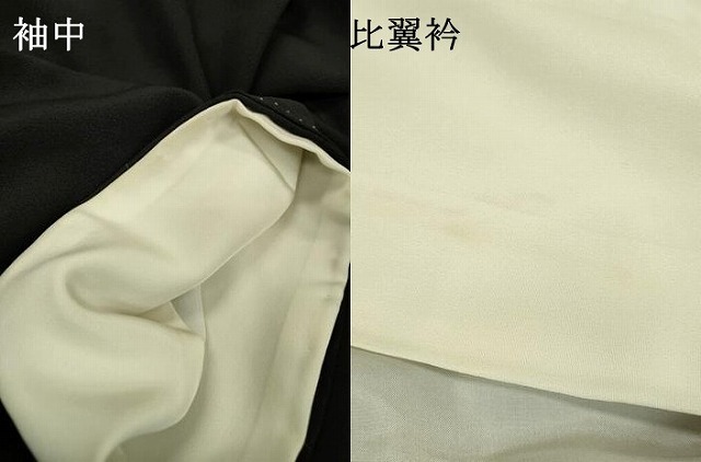 | 【正絹・五つ紋・比翼仕立て】 状態は接写画像のように袖中・比翼衿に薄い汚れがございますが その他特に目立ったシミ汚れなどもなく大変良い状態です。 大変上質な逸品になります。 お安く出品致しますので、是非この機会にいかがでしょうか?