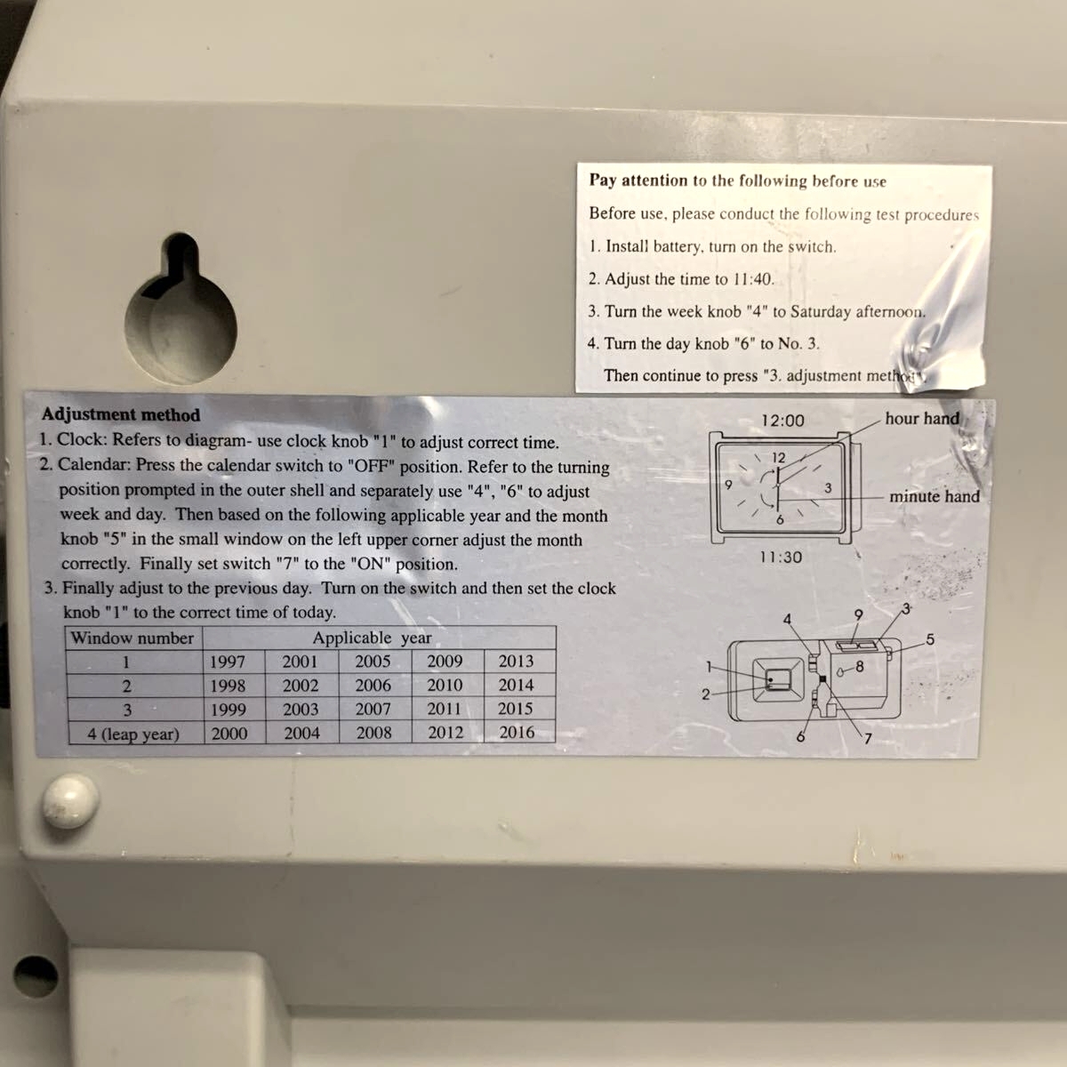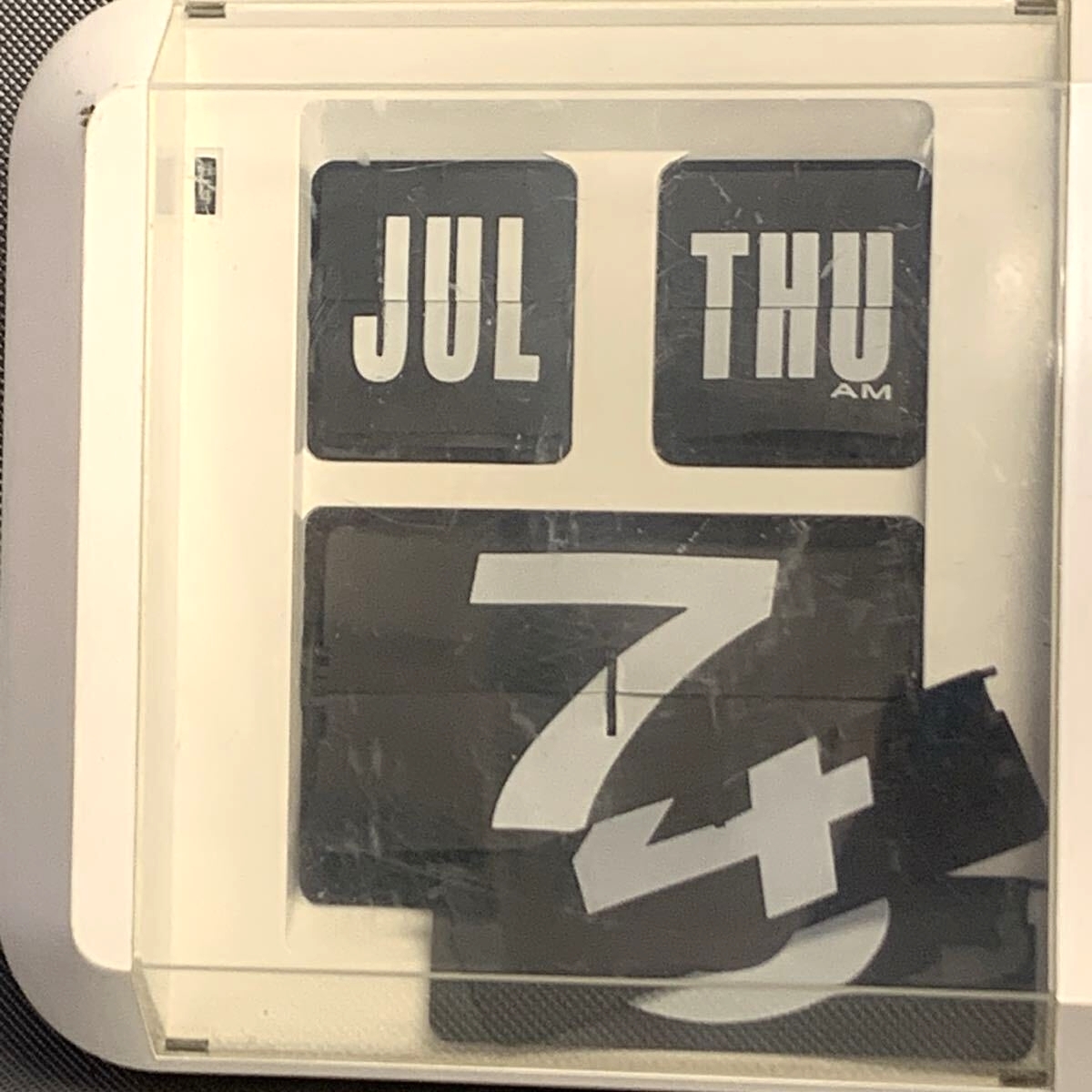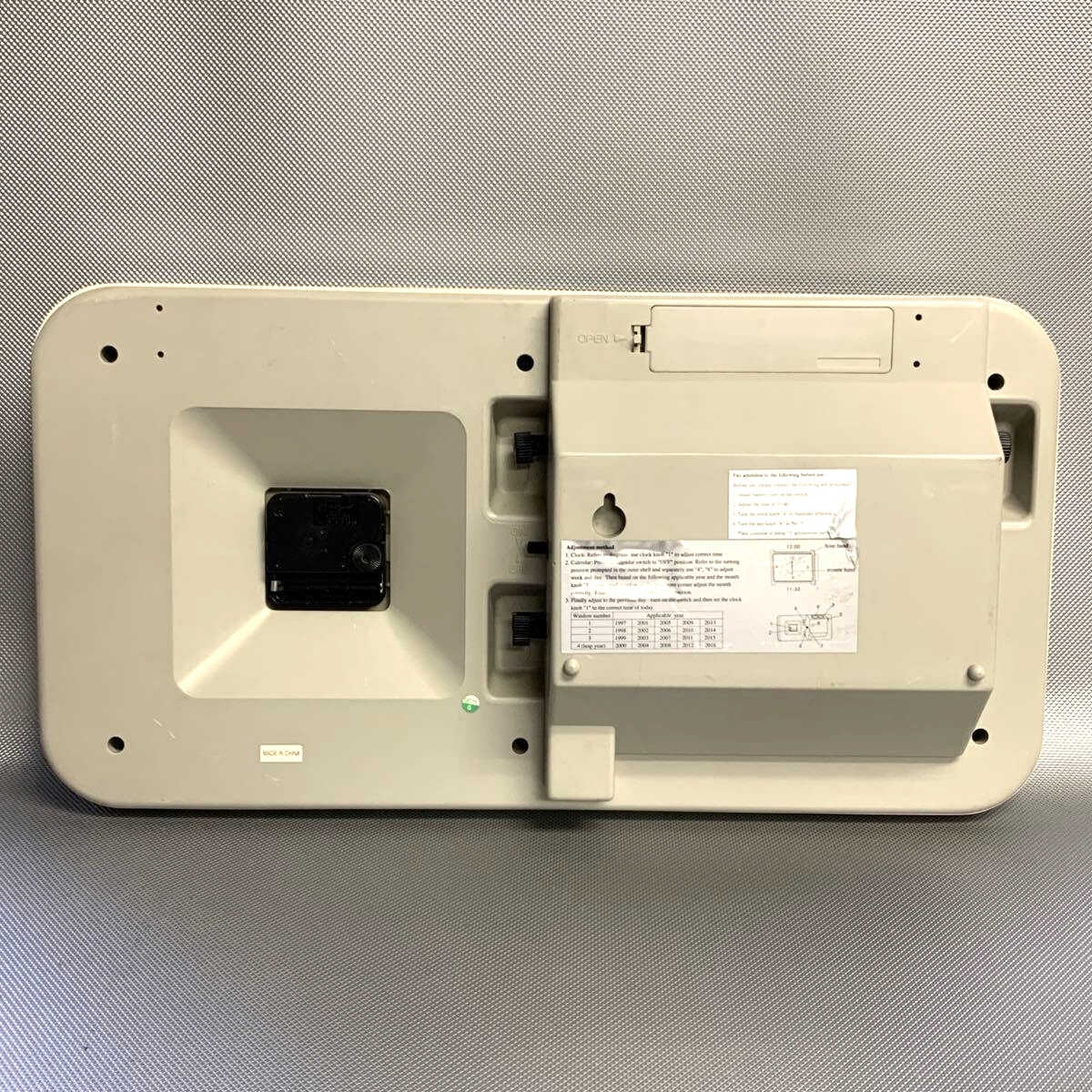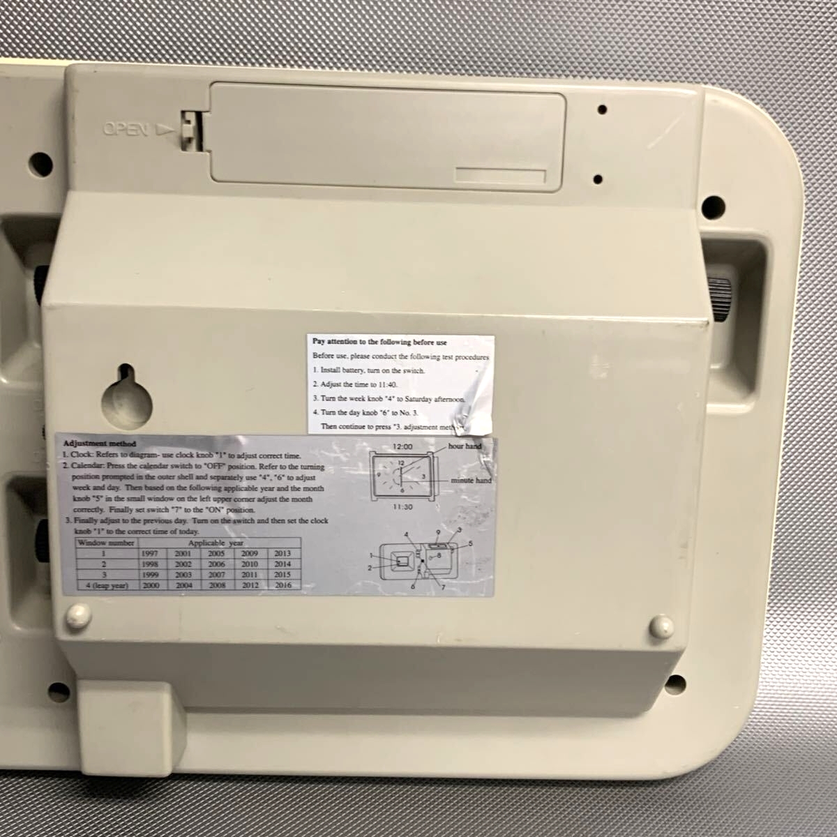 日めくりカレンダーのほうはカレンダー部分に損傷があるため、正常に動作しないものと思われます。