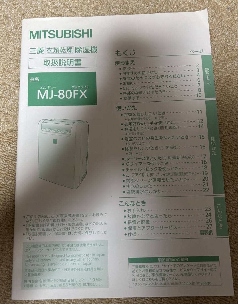 三菱 MJ-80FX-G 衣類乾燥除湿機