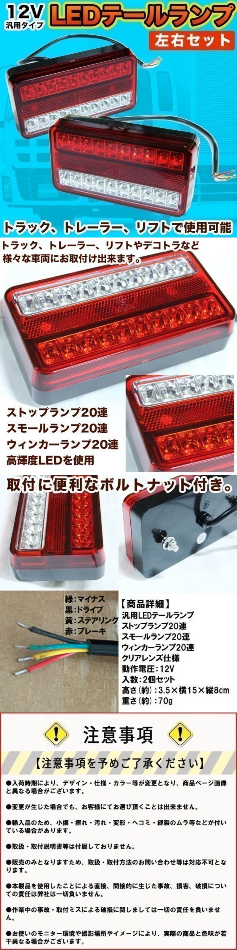 汎用 LED テールランプ 左右 セット 12V トラック トレーラー フォークリフト デコトラ ウインカー クリアレンズ レッド 赤