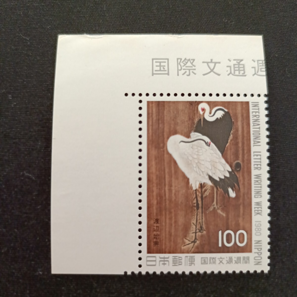 ★国際文通週間。(1980年)。昭和55年。渡辺始興画「鶴図」。文通週間。記念切手。昭和切手。切手。
