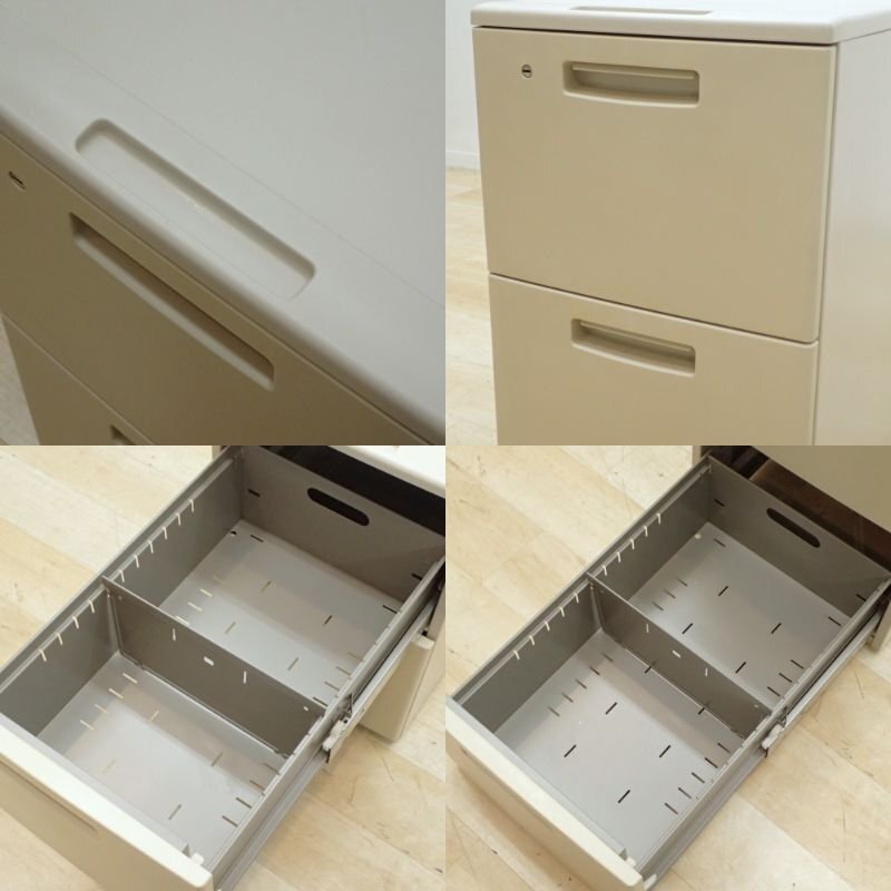 コクヨの2段ワゴンです。 オフィス空間に合わせやすいグレーカラー。 2段引き出しタイプは、A4ボックスファイルを大容量収納ができる資料保管庫として最適! お手元に多くの資料を持っておきたいワーカーにおすすめ。 事務作業の効率化にぜひ、デスクワゴンをどうぞ! ※フロント部が使用による変色が見られます。機能上の問題はございません。 |