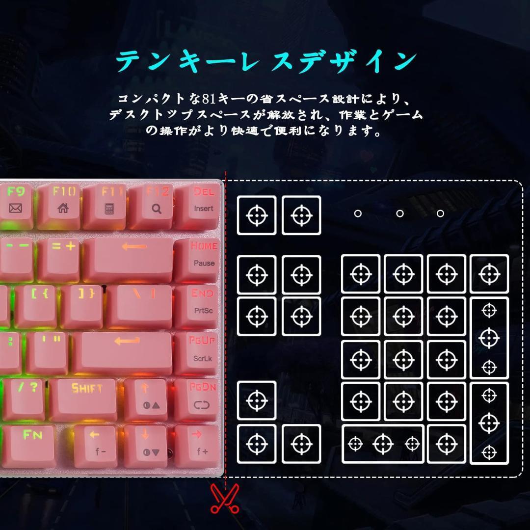 ![]() ![]() ![]() ![]() ![]() e元素ゲーミングキーボード メカニカル式キーボード 赤軸・青軸・茶軸 アンチゴースト英語配列81キー RGB発光LEDバックライト付き USB有線防水 Windows/Mac OS対応のオフィス&ゲーム用キーボード (青軸, ピンク) 【81キーロールオーバー・コンパクトなサイズ】全81キー無衝突。各キーが独立キースイッチを採用し、1つのキーに対して1つの機械式スイッチと金属製のバネ(スプリング)を組み込む特殊な構造です。81キーを同時に押せても干渉されず、意図通りに入力できます。仮に1つのキースイッチが壊れても交換すれば使い続けられ、キーボードを開いてPCBボードを取り外せ必要はありません。メンブレン式キーボードに比べ、耐久性に優れ、打ち心地が絶品と評判が高いです。キーの感触にこだわりのあるユーザーや着実なキー入力が求められるヘビーゲーマーに最高。テンキーレスの81キー小型モデル、サイズが幅310mmでマウスの動作を邪魔になれず、省スペースで使えるのがメリットです。 実物の写真は10枚目からになります。 トップ画像や商品説明と相違がある可能性がありますので実物の写真を確認してからのご購入お願いします。 もし相違や商品説明と違う場合はコメントくださいませ。商品詳細をお調べいたします。 不安がある方、完品を求める方は購入しないでください。 amazon価格 ¥2,999 即日発送。 開封痕、使用痕等がある場合がございます。 外箱の破損や多少のビニールの破れ等は不問としております。 本商品は訳あり商品となっているため、箱が潰れている、ビニールが破けている、指紋が若干ついている、などの可能性がございます。 検品は最低限しておりますが使用感や部品不足など見逃している可能性もございます。 1100円以上の商品はフォロー+商品購入希望コメントで100円お値引き致します。 発送方法は最安値で送るため変更になる場合もございます。 必ずプロフィールを一読、了承されてからのご購入お願いします。 購入後のクレームは対応しかねますので上記をしっかりとご理解いした上でのご購入をお願いします。 管理用箱番号【97B218】 |