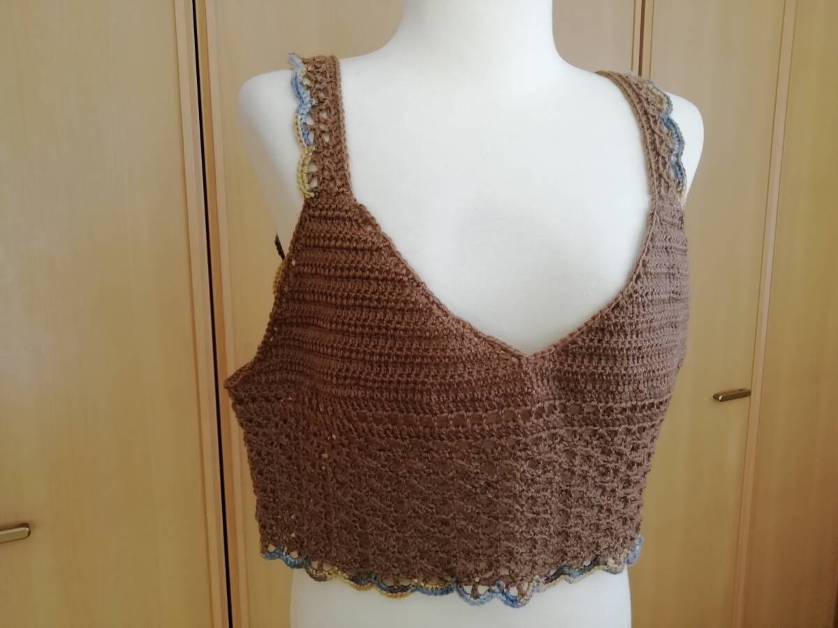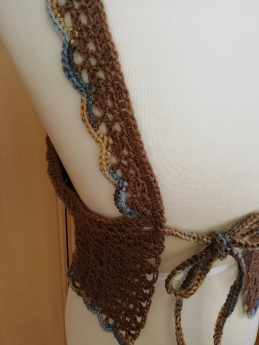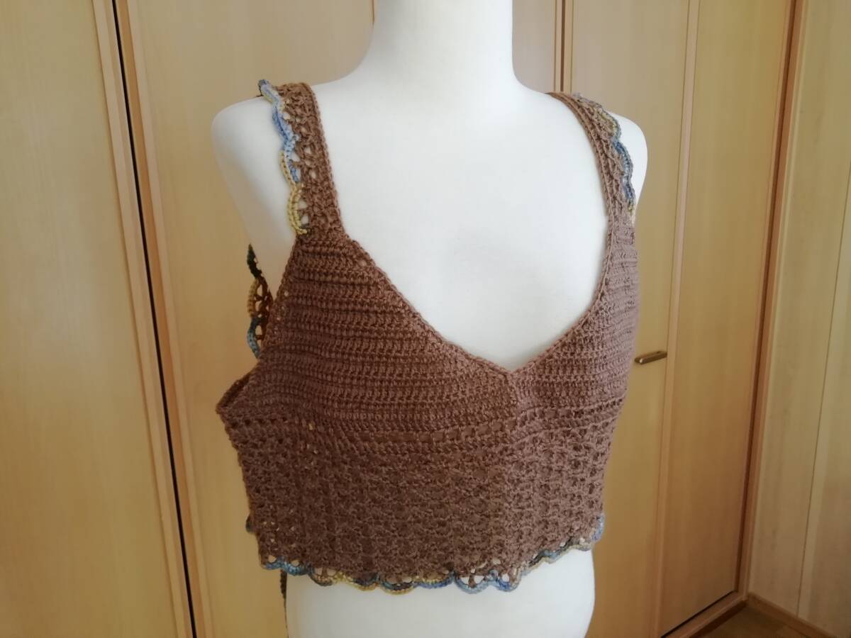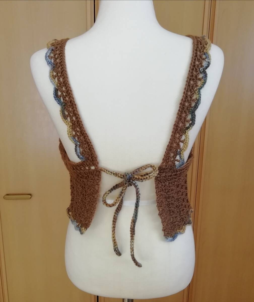 かぎ針編みで作りました、ミニ丈ビスチェです。