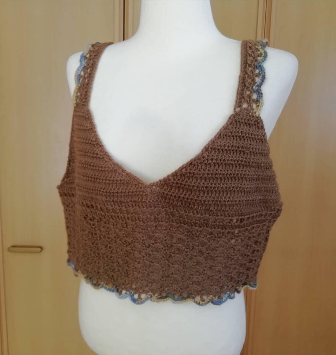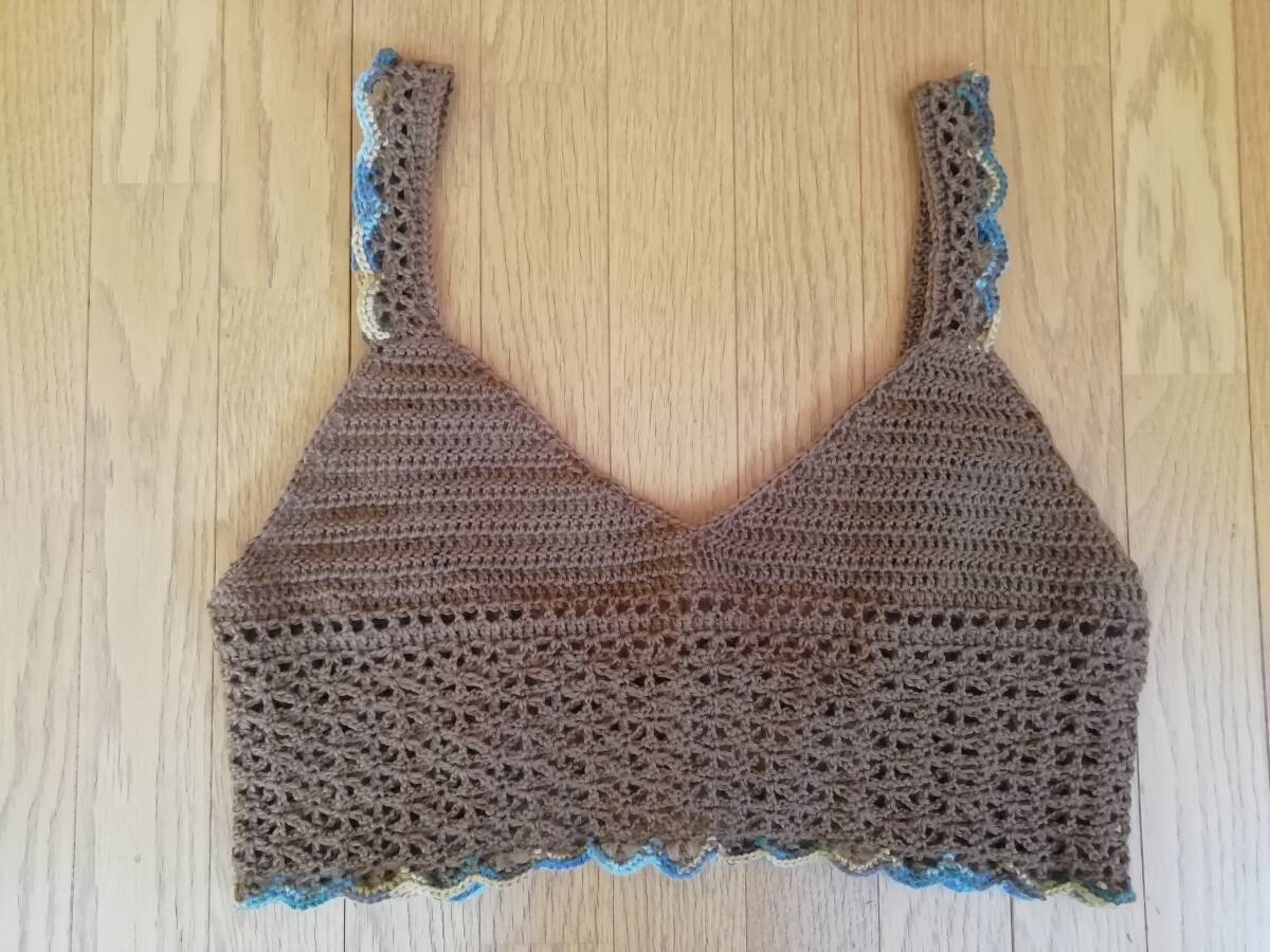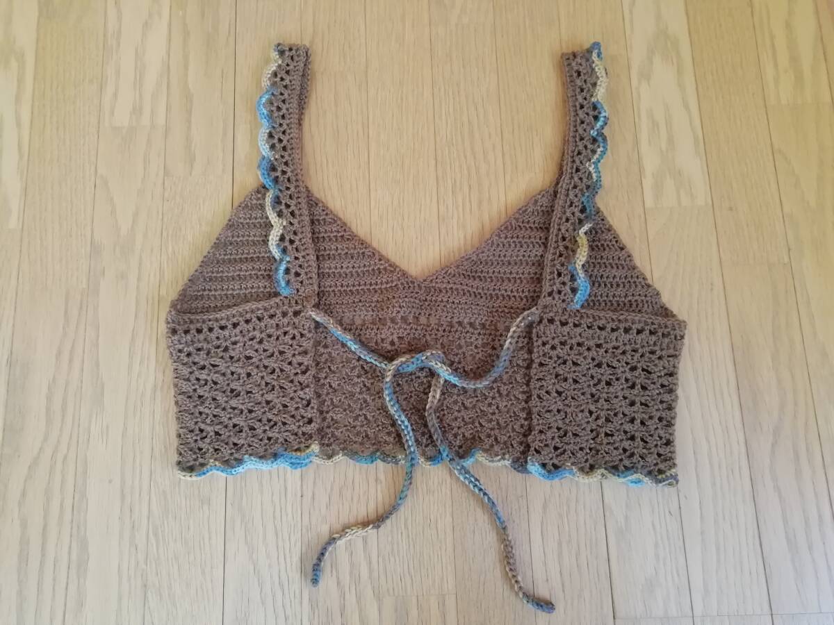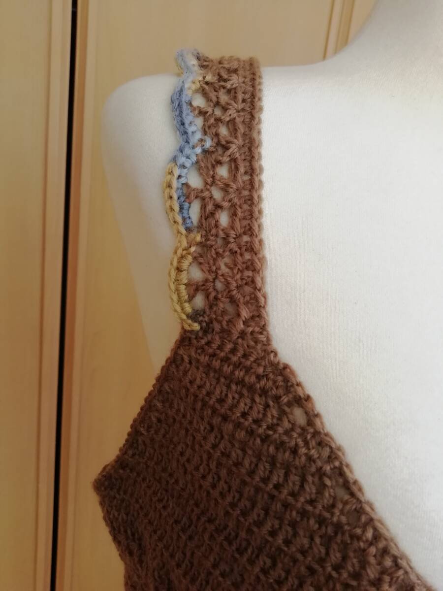 かぎ針編みで作りました、ミニ丈ビスチェです。
