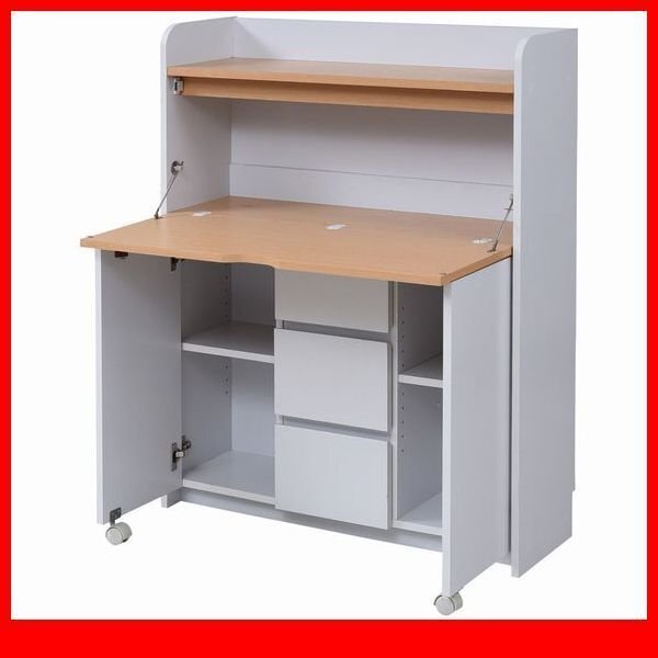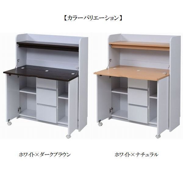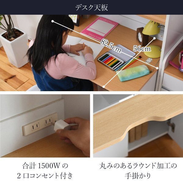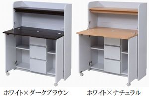 | 折り畳み式天板は使いたいときだけ広げて使わない時は畳んですっきり、ライティングデスクです。 薄型で省スペースなのでリビングに最適です。 お子様の「リビング学習」から、ママやパパのパソコンデスクとしてもOK。 上部にはランドセルなどを置けるオープン収納部、下部には扉収納部と3段の引出しで、収納力にも自信あり。 コンセント、配線コード穴もあるので、PC、周辺機器の設置もOKです。 |