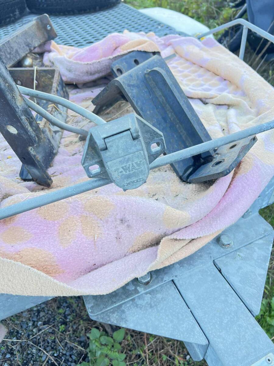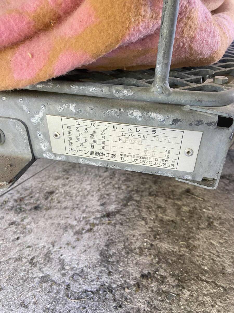 軽トレーラー 一時抹消済み 株式会社 サン自動車工業 ユニバーサルトレーラー T3−1 現在アルミホイルのタイヤヒビあり要交換 スチールホイール純正タイヤ付き 車体側ステー付きですが、車種不明 トレーラーに関してあまり詳しくありませんので、専門的な質問には、お答え出来ません。引き取り限定、引き渡し後、キャンセル、クレーム サポートは出来ません。