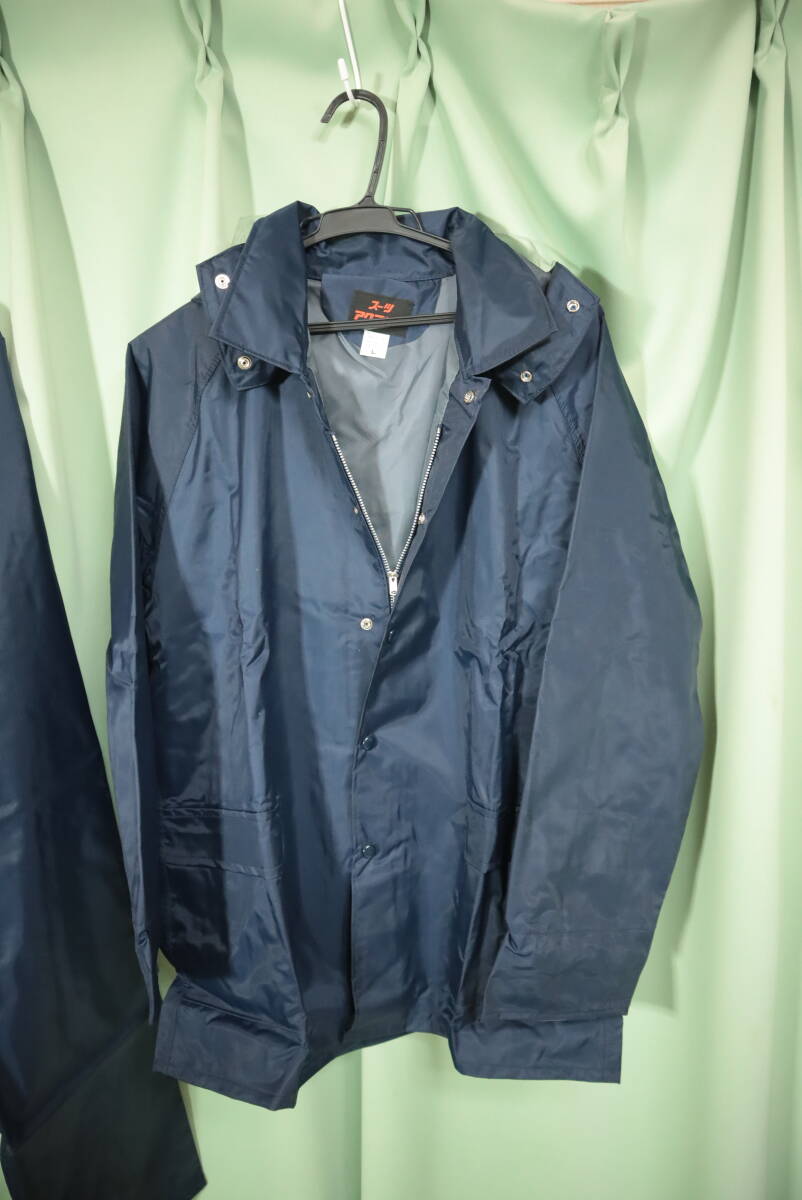 | ☆レトロ ゴム引き 紺 レインコート合羽上下 L☆ |