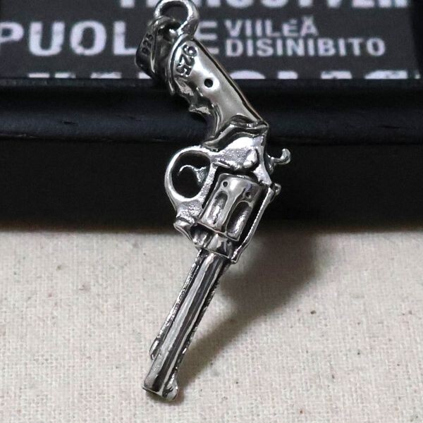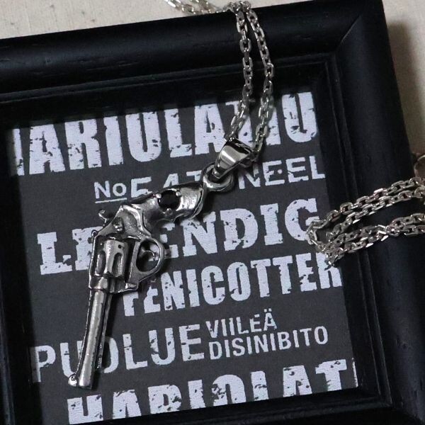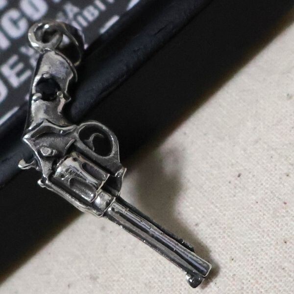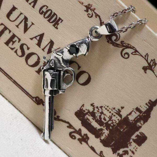 重厚感と存在感が際立つ、シルバー925製のリボルバーモチーフペンダントトップです。 回転式拳銃を細部まで精巧に再現したデザインは、男らしさや強さ、そして決断力の象徴として人気があります。 リボルバーはアクセサリーとしては「守護・意志の強さ・困難を打ち破る力」の意味を持つラッキーモチーフとも言われています。 日々を前向きに過ごしたい方、逆境に負けない強い心を身に付けたい方におすすめです。 シンプルなネックレスチェーンに通すだけで、コーディネートにエッジの効いたインパクトをプラス。 バイカーファッションやストリート系はもちろん、ミリタリーやロックテイストにもぴったり。 一点物のような個性を放つこのペンダントは、普段使いにもコレクションにも◎ 気になる方はお早めにどうぞ! 上質なシルバー925を使用したペンダント。シルバーの白いキラメキと洗練されたデザインで、日常使いから特別な日まで幅広くお楽しみいただけます。 プロフィールの確認お願いします。 ノーブランド商品なのでブランド品の様に高額ではなく、シルバーの価値に見合った価格で販売させて頂いています^^ ★商品詳細★ ・商品:ペンダントトップ(TOP) ・商品番号:SH0786na ・材質:シルバー925 ・重量:約5.5g ・サイズ:約46.8mm×11.8mm ※バチカンを含んだ全体の長さ ・バチカン内径 約4.9mm×4.2mm 商品はTOPのみの販売となりますので、写真のチェーンをご希望あれば、同梱条件で特別価格にて販売させて頂きます。 ★購入時の保障について★ お送りした商品が商品詳細記載と違いがあれば、全額返品返金にてさせて頂きます。 万一郵送時にトラブルがあった場合にも、責任をもって対応させて頂きます。 ご安心して購入ください。 #首飾り #首飾 #ネックレス
