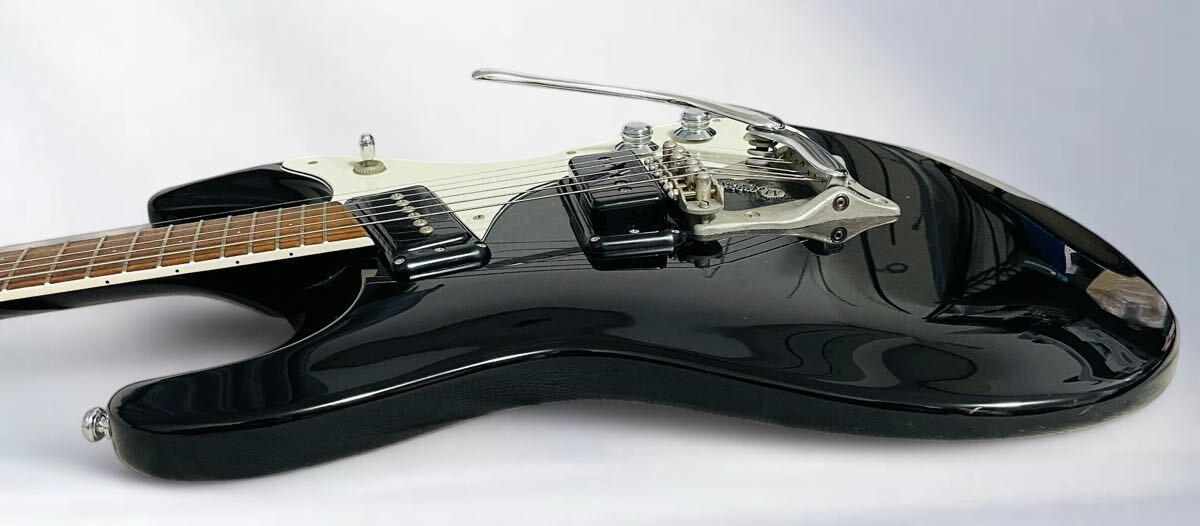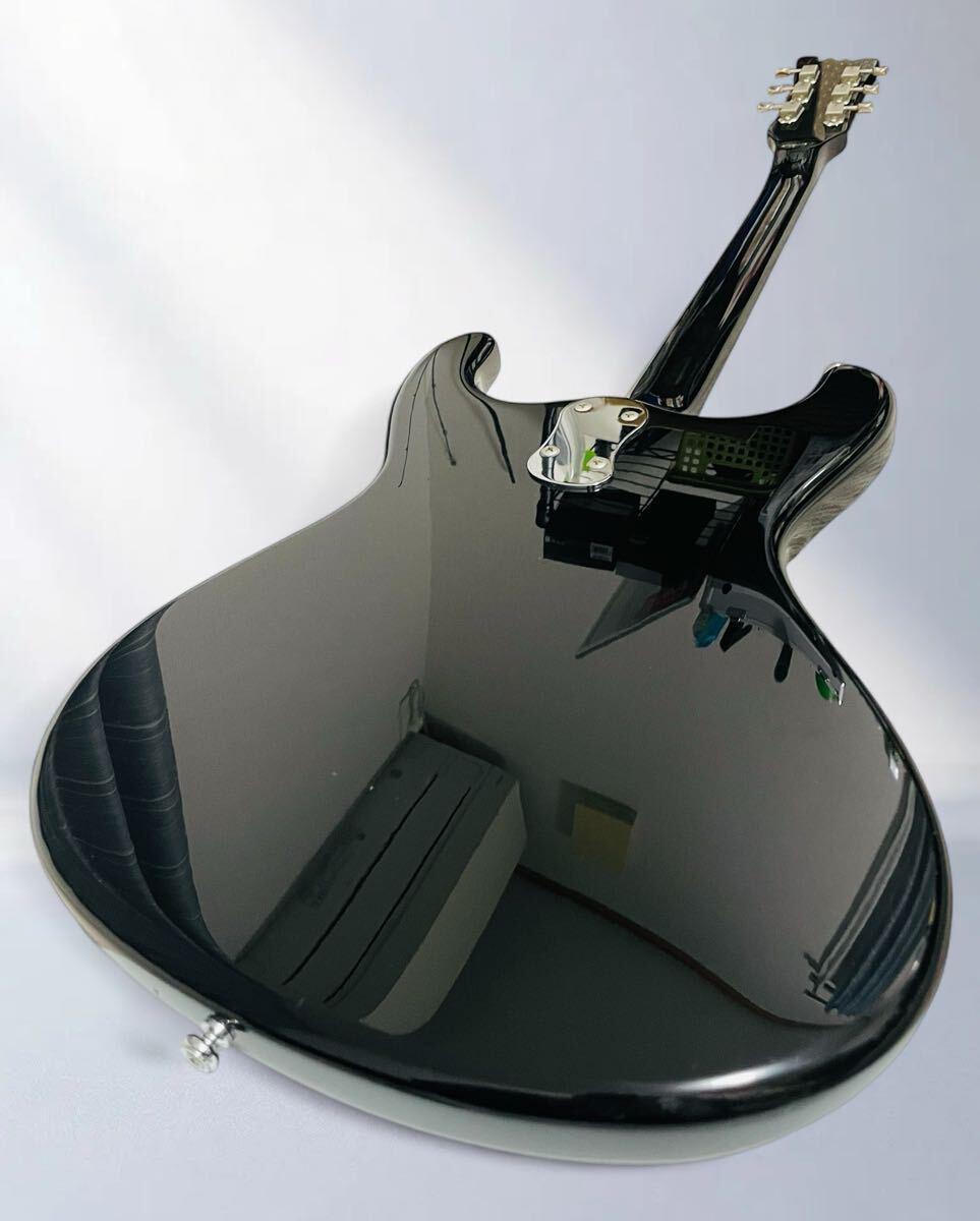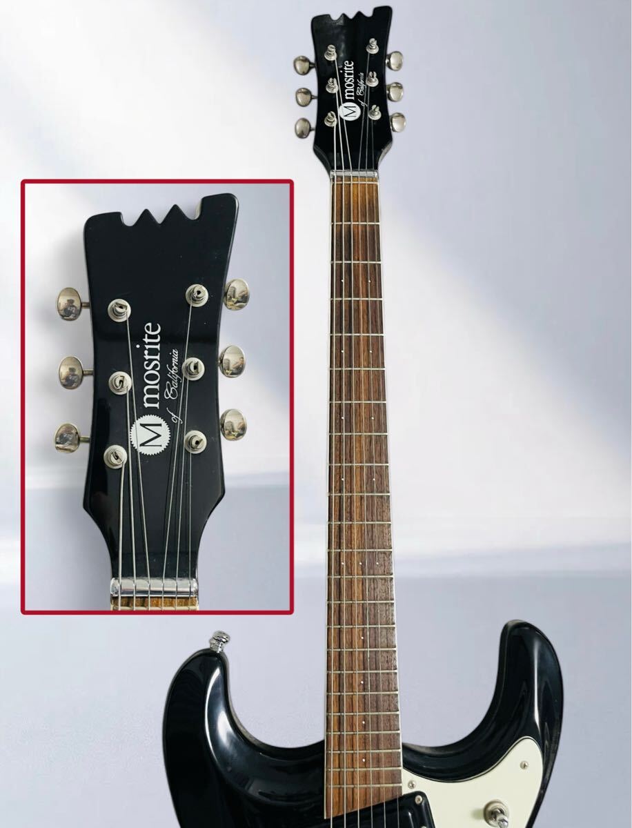 ・Mosrite モズライト Excellent 65 黒雲製作所 ブラック色 を出品いたします。 ・細かなものはございますが、目立つ傷や汚れ等無く、また使用感も少なく、楽器機材としては非常に美品です。 ・本体のみの出品となります。 ・ネックやフレットに傷等ございません。またネックの反りもございません。フレットの減りもほぼ無く、9割以上残っております。 ・先日までピックガードの保護フィルムも貼ったままであり、剥がした後はほぼ使用しておりませんので、ピックガードの表面傷はほぼ無しの状態です。 ・ギター弦は若干経年劣化がございますので、使用は可能ですが、交換をお勧めします。 ・ノイズやガリの発生等ございません。その他、機能上の問題等ございません。 ・ペット無し禁煙の環境にて保管しておりました。 ・プチプチとダンボールで梱包し、発送時の外傷等が発生無き様に対応いたします。 ※Amazon製品情報より引用。 黒雲製作所による日本製の製品です。 美しい曲線を描いたジャーマンカーブボディ。 ローラーブリッジ、0フレット、ノンバインディング、ボルトオンネック、トップジャックの65年仕様。