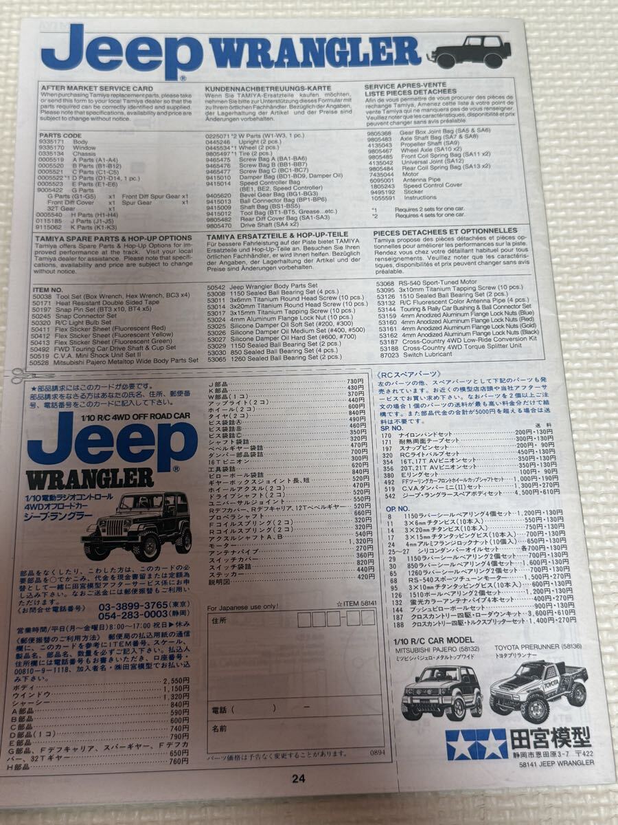 当時物 タミヤ 1/10 電動RC ジープ ラングラー説明書です。