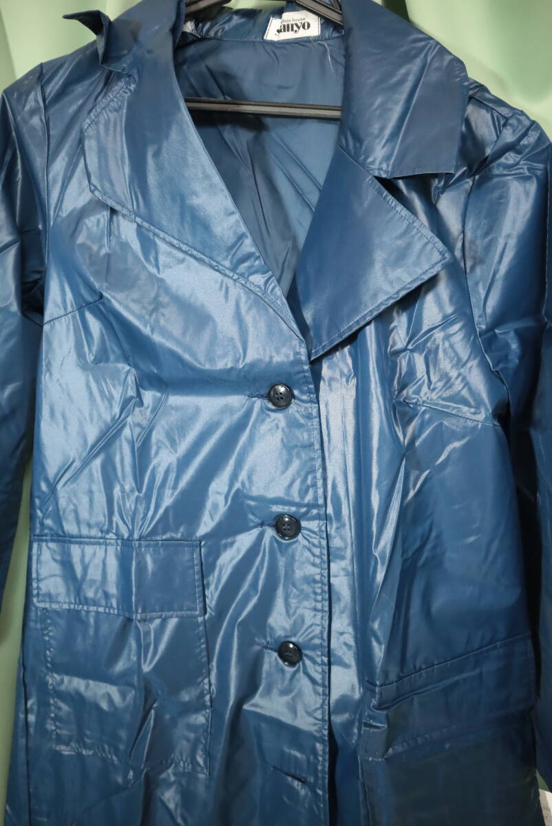| ☆レトロ 女子、婦人用 ネイビー 光沢ナイロンレインコート 9号☆ |