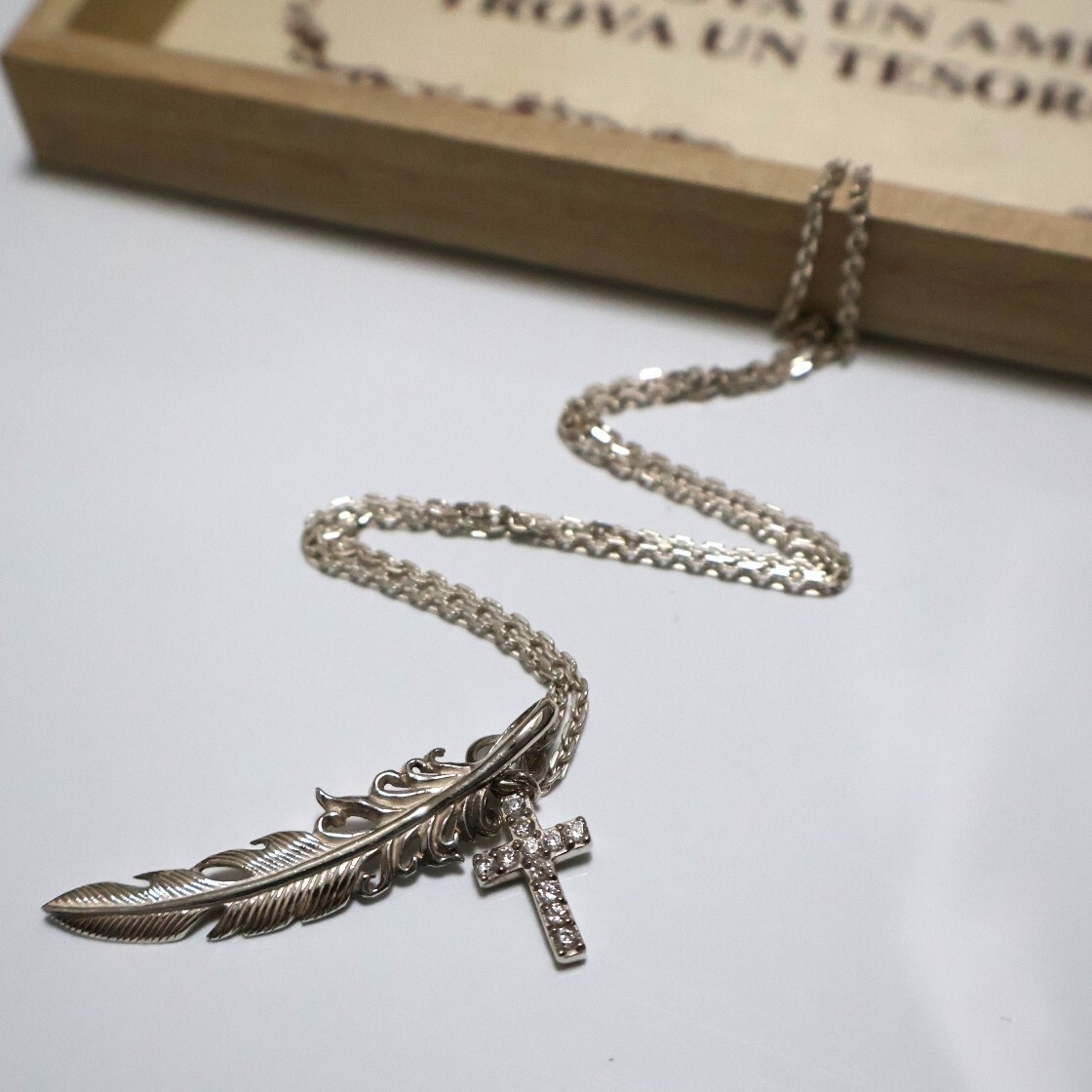 神聖なエッセンスが詰まったシルバーネックレストップが登場。美しいフェザーとクロスが織りなすデザインは、十字架の象徴としての信仰心と、羽の意味としての自由と軽やかさを同時に表現しています。シルバーの輝きと細部までこだわったデザインが、あなたの装いに洗練さを与えます。日常使いはもちろん、特別な日のアクセントとしてもおすすめ。心を込めた贈り物としても喜ばれる逸品です。