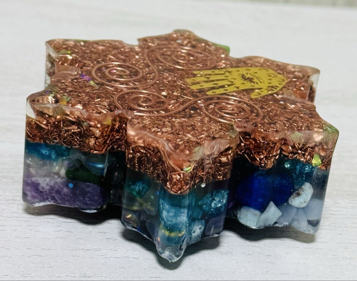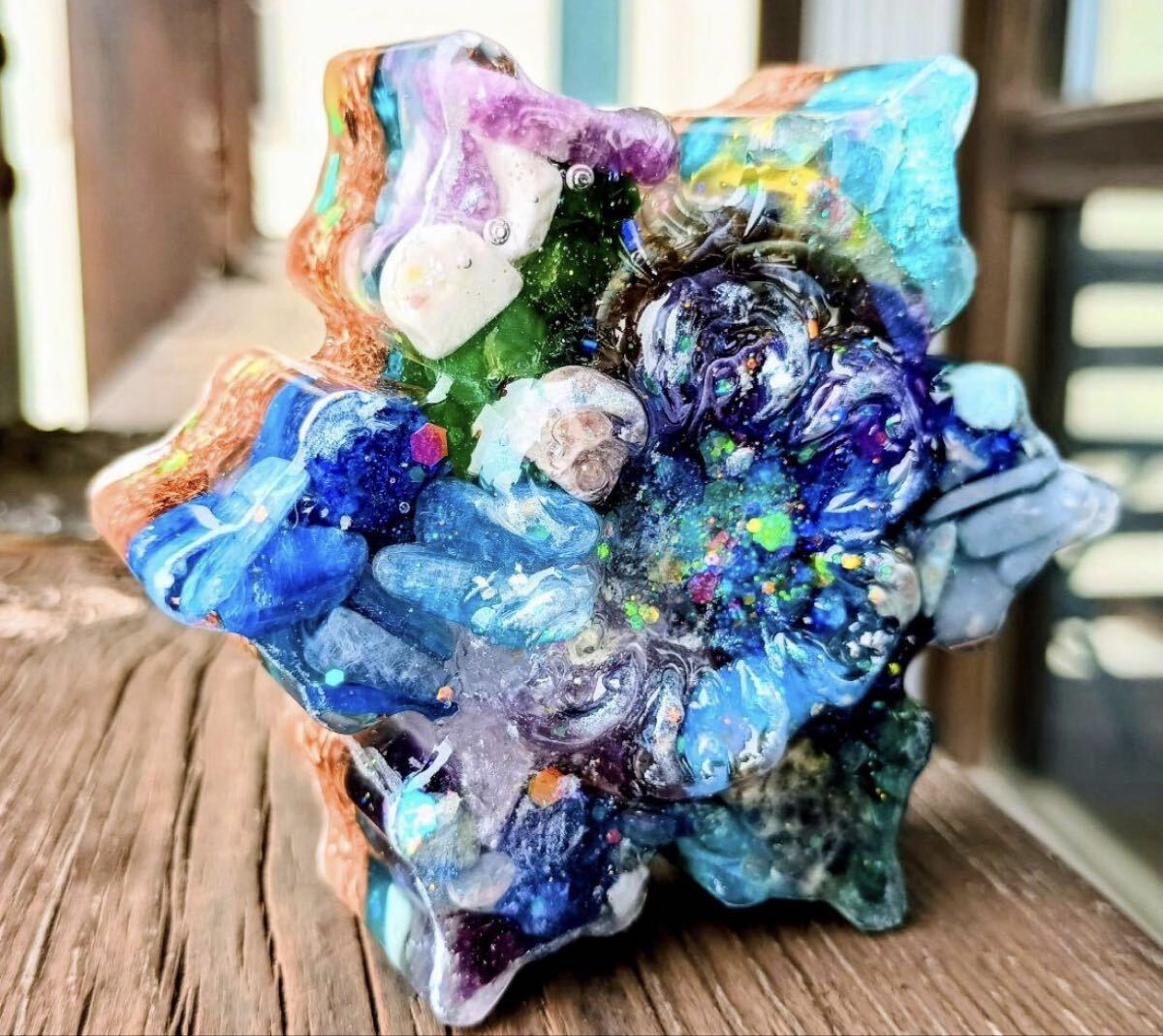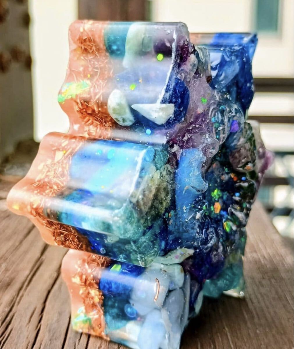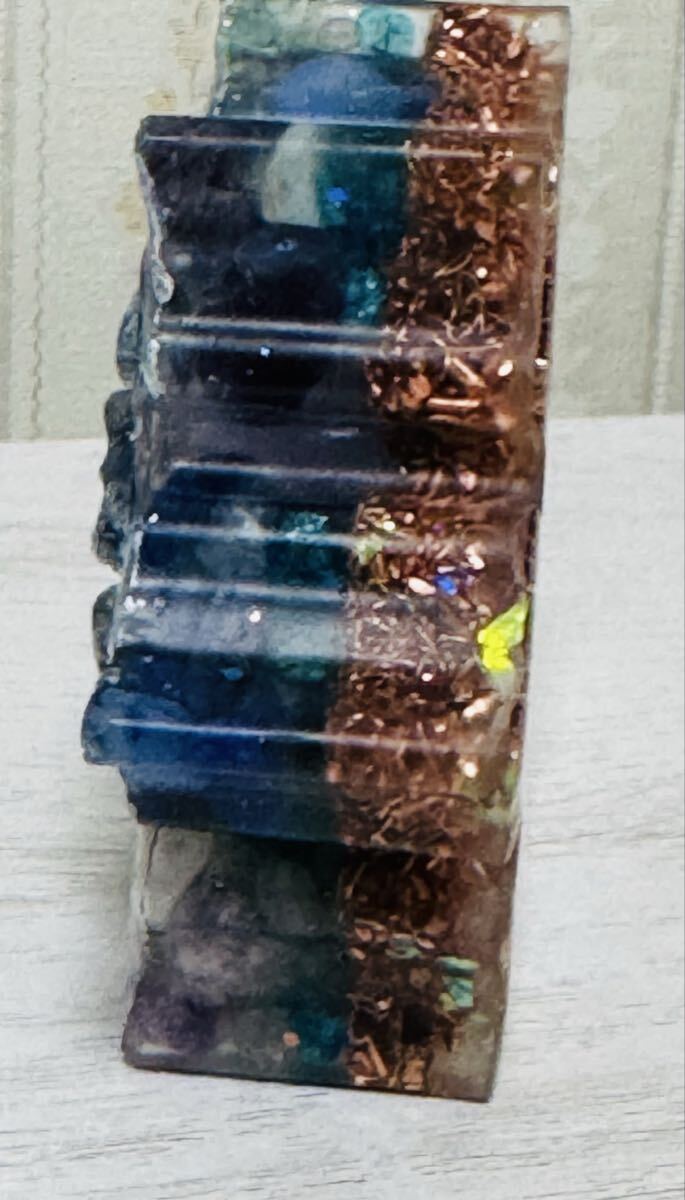水晶ポイント、カイヤナイト、ラリマー、ラピスラズリ、ブルーカルサイト、エンジェライト、レピドライト、チャロアイト、セレスタイト、エンジェルオーラクォーツ、クラック水晶、金箔など