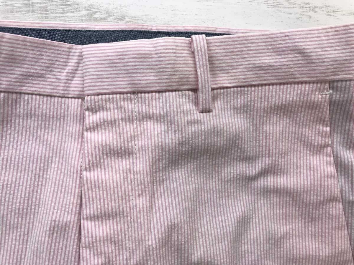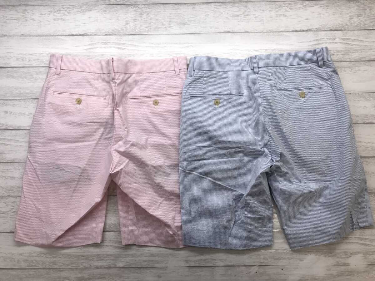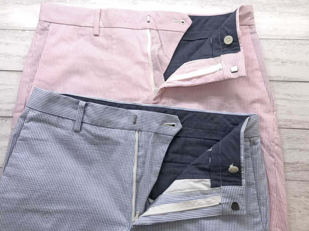 ユニクロ UNIQLO トラッド マリン シアサッカー ピンストライプ柄 ハーフ ショートパンツ 2点セット メンズ S ピンク白 ライトブルー白です。