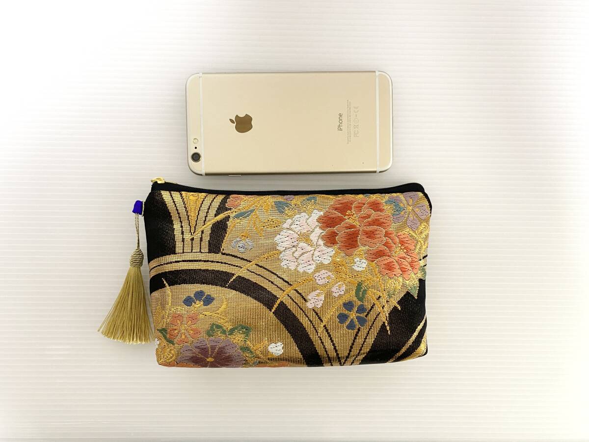 日本の古着物帯をリメイクして作製したポーチでハンドメイド品です