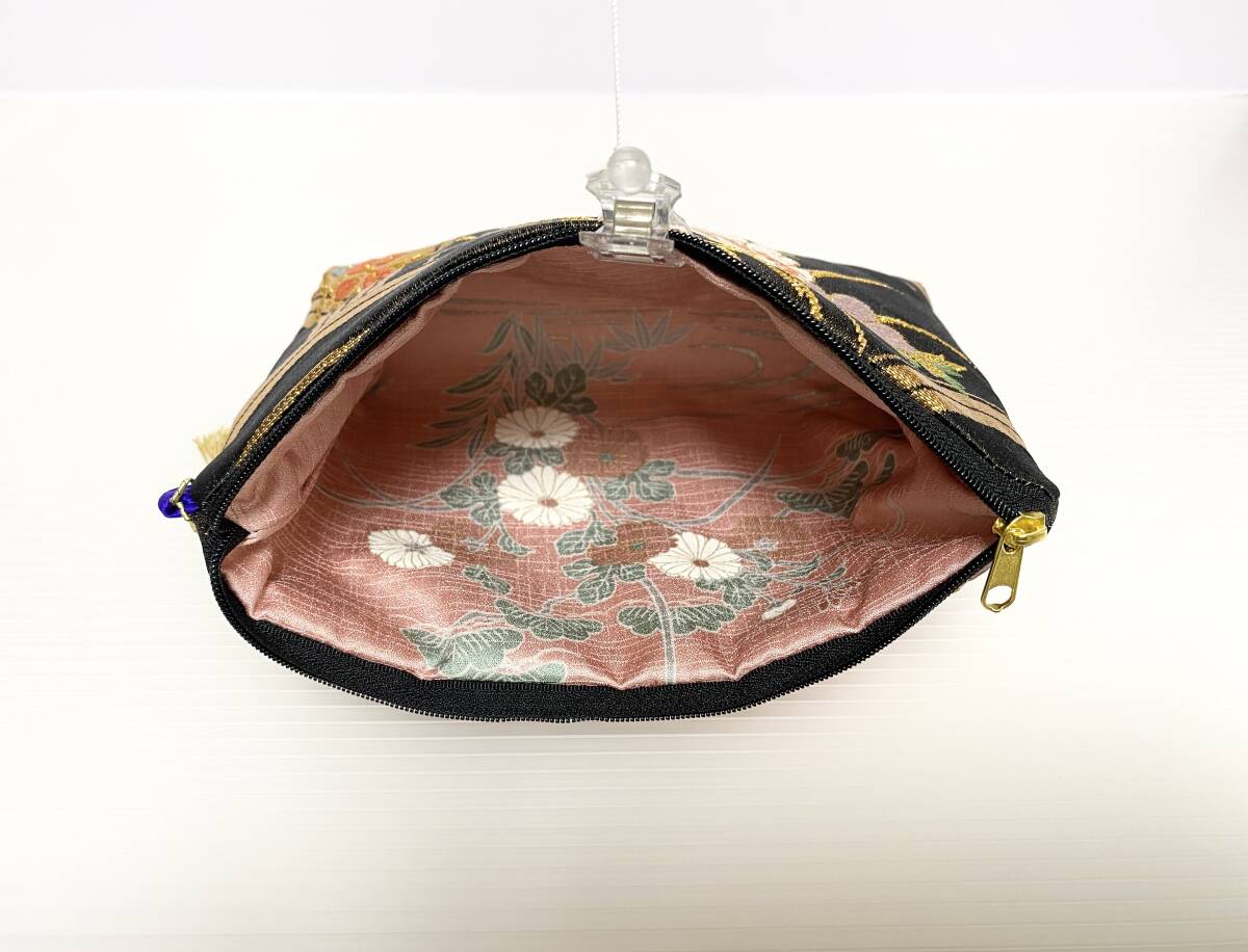 内側の裏生地にも着物布を使用しておりますのでしっかりとした造りの帯リメイクポーチ着物リメイクポーチ