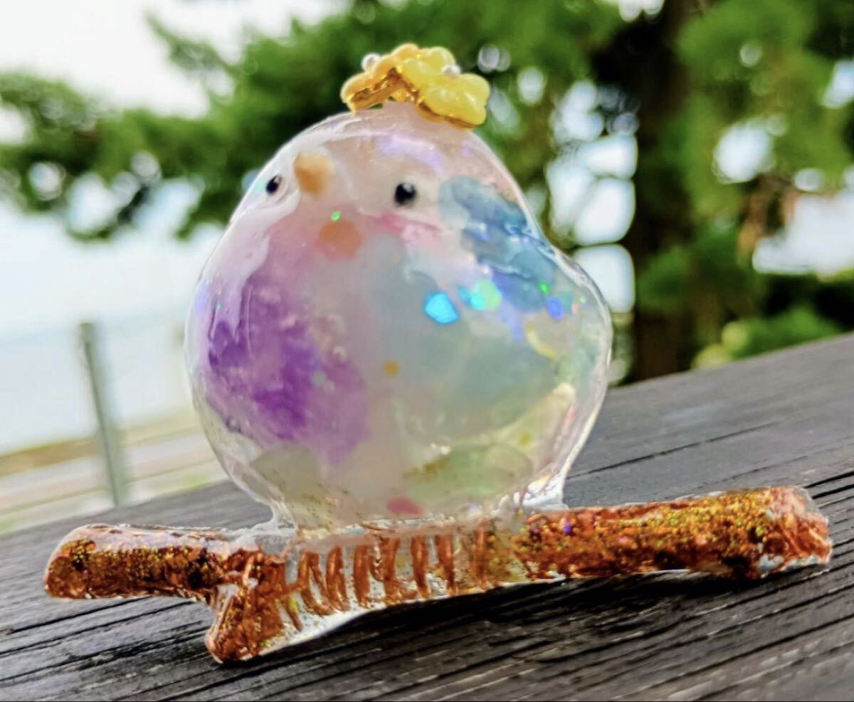 自立するシマエナガちゃんのオルゴナイトです
