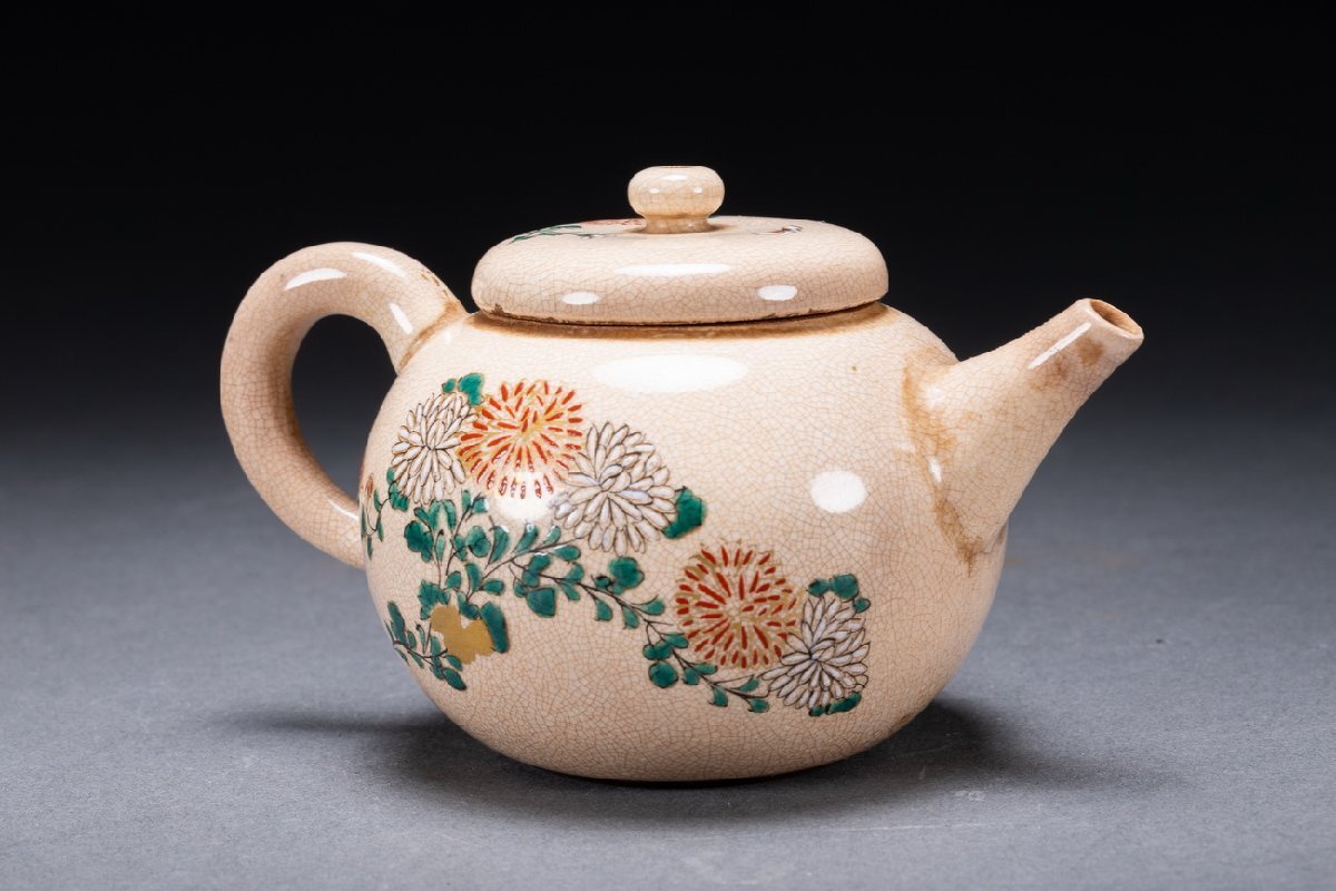 【雲錦】清水焼 在銘 色絵 花卉図茶器揃い 茶道具 直入識箱 真作保証 美術品7L10-133S05