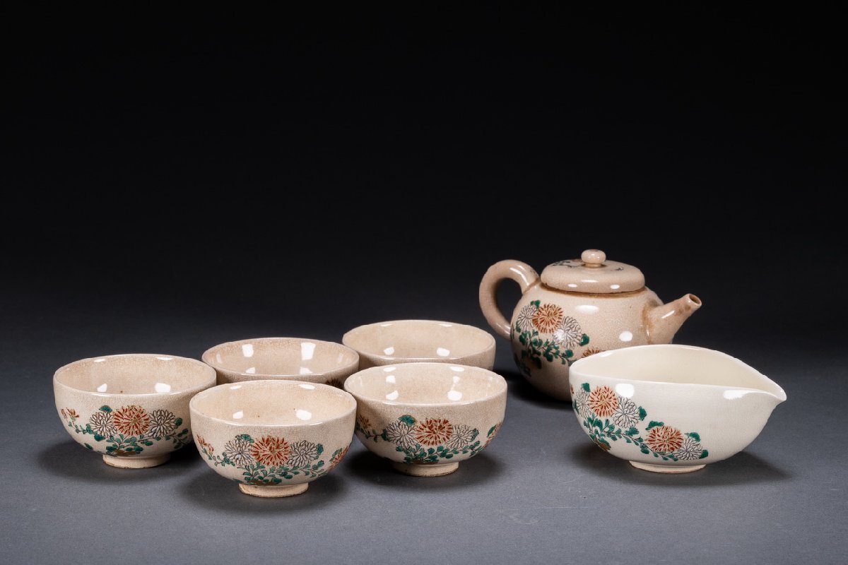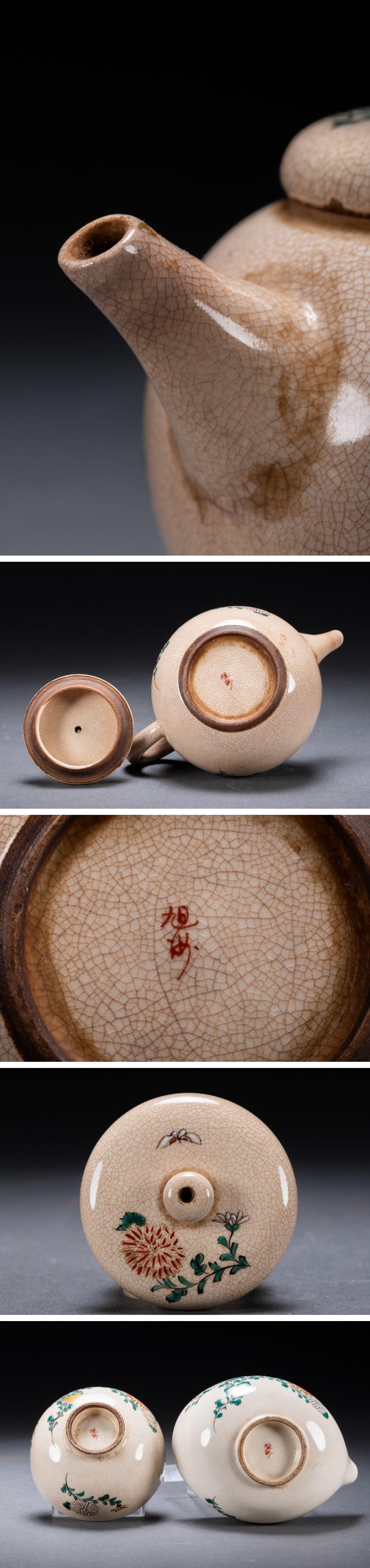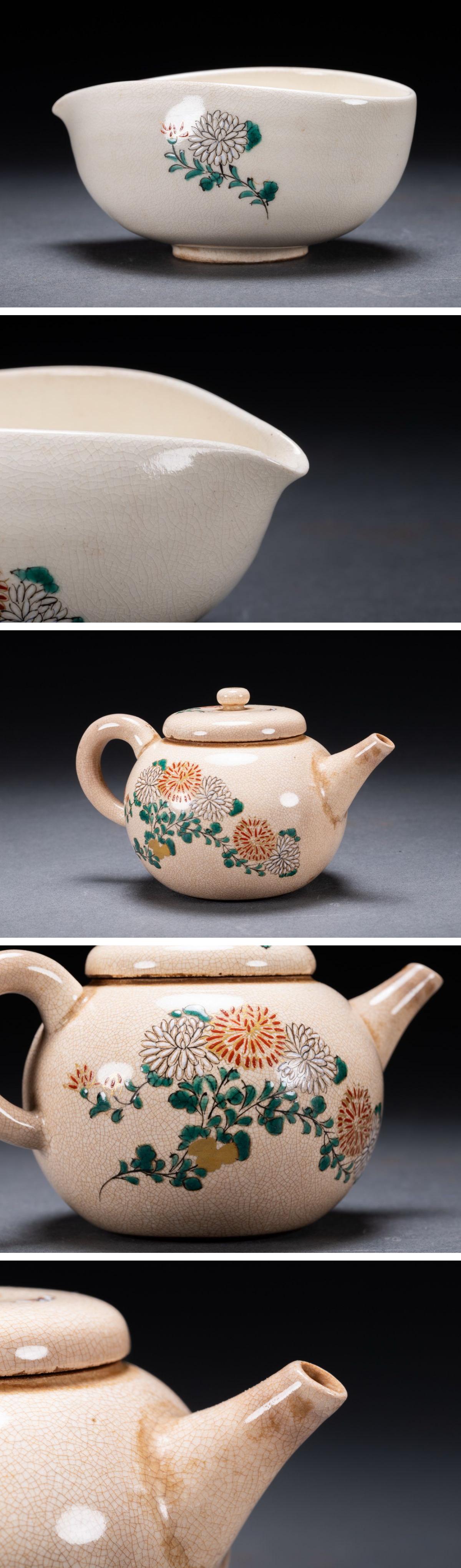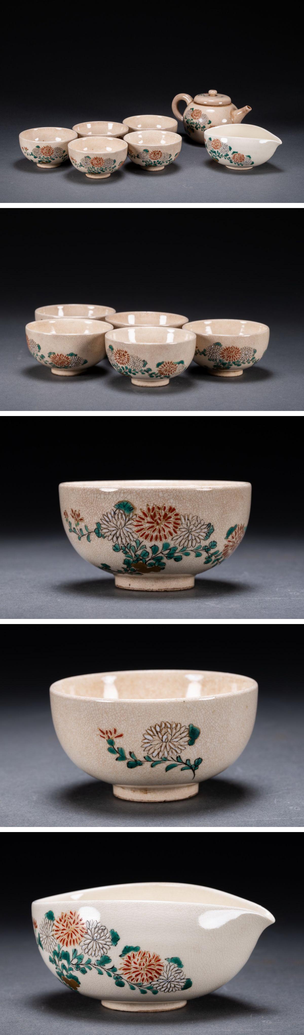 【雲錦】清水焼 在銘 色絵 花卉図茶器揃い 茶道具 直入識箱 真作保証 美術品7L10-133S05