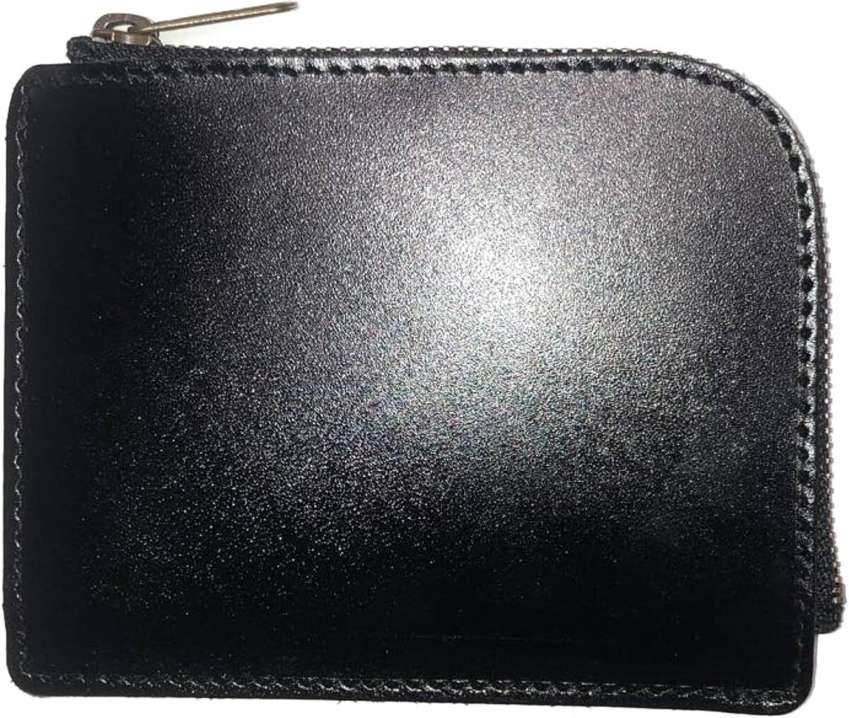 薄型 L字ファスナー財布 本革 レザー 革 ミニ コンパクト財布 二つ折り コインケース 小銭入れ メンズ レディース 日本製 黒 (ブラック)