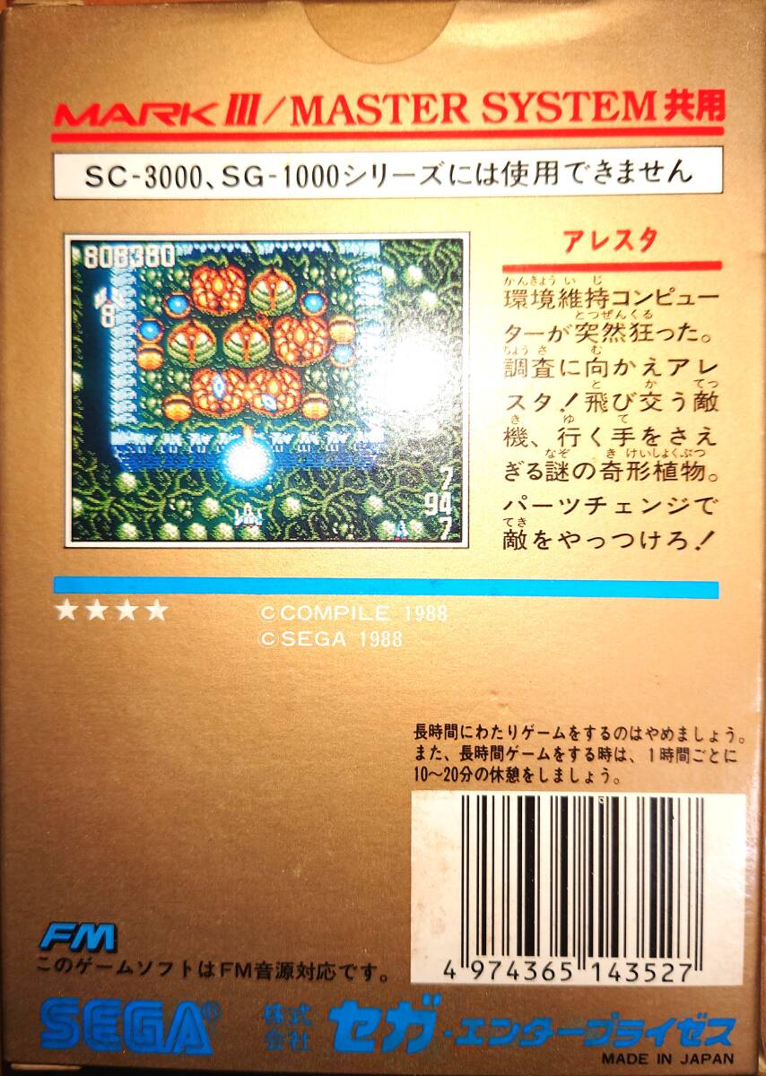 ご覧頂きありがとうございます。 【新品未開封】セガマークⅢ用ソフト アレスタ 箱説付 コンパイル SEGA MARKⅢ MASTER SYSTEM ALESTE マスターシステム になります。 実家に大切に保管してあったお品物です。久しぶりに遊んでみたい方はいかがでしょうか? ■状態■ パッケージなどに大きな傷などはございませんが、あくまで一度人の手に渡ったお品物になります。 新品未使用ではありますが長期保管している商品ですので、写真を参考の上、多少の瑕疵についてはご容赦下さい。 ■お願い・注意など■ 落札後、48時間以内に取引連絡をいただける方、また、3日以内(土日除く)にお振込みいただけるの方の入札をお待ちしております。 お品物を受け取り後は、速やかに受け取り連絡をお願いいたします。 入札、落札後のキャンセルはご遠慮ください。 ノークレーム・ノーリターンでお願い致します。 悪評価が多い方は当方の判断で削除することがあります。 かんたん決済は入金確認後の発送とさせていただくことがあります。 |