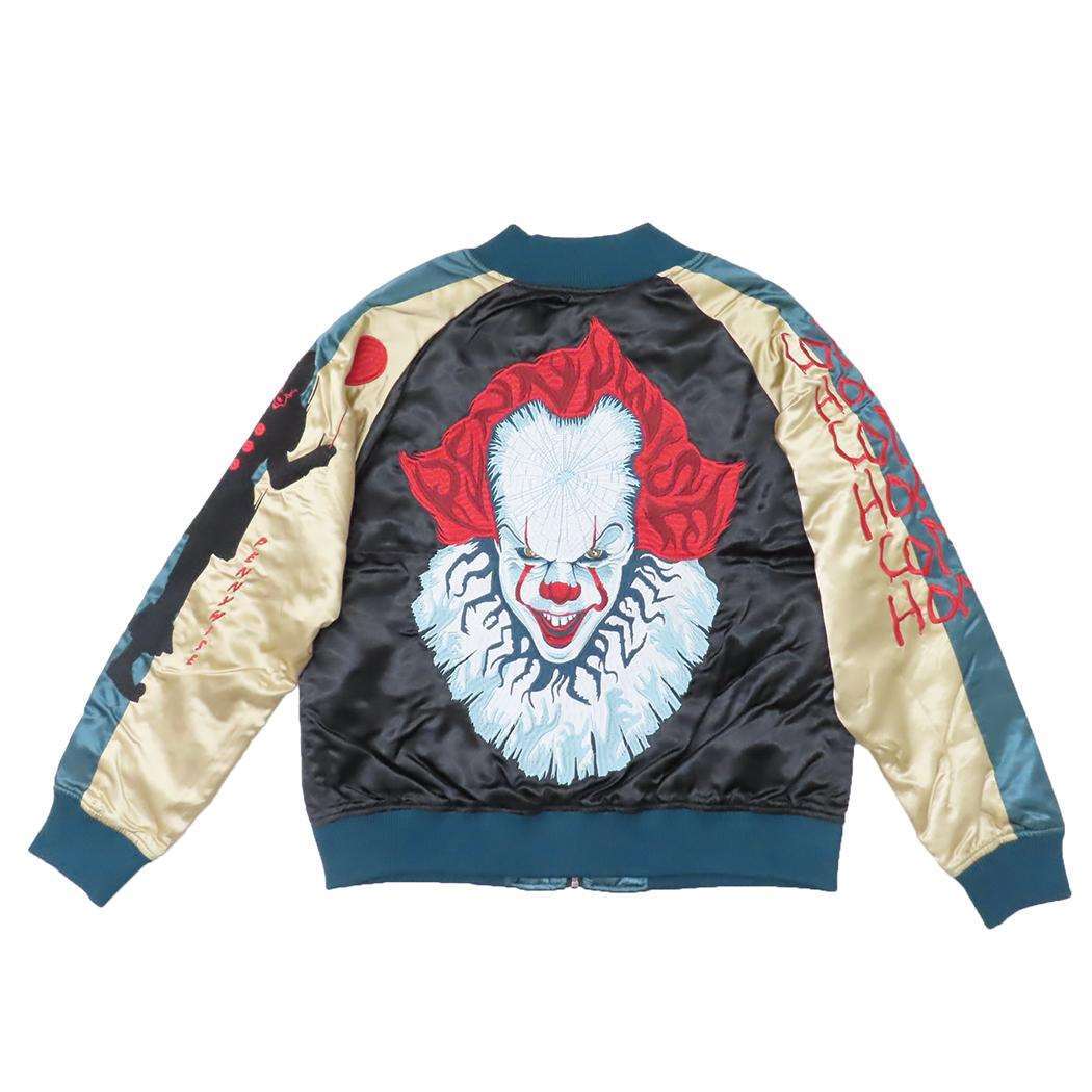 豪華な刺繍デザインがKOOLなスカジャンが登場 人気ホラー映画[IT/イット]グッズにKOOLなnewアイテム登場こちらは刺繍デザインが豪華な[スカジャン]フロント バックに刺繍デザインされています他にもいろいろあるのでお気に入りを揃えてくださいサイズ:Lチェスト:96-104cm身長:175-185cm胸囲:平置きで約58cm袖丈:約63cm着丈:約58cm素材:ポリエステル