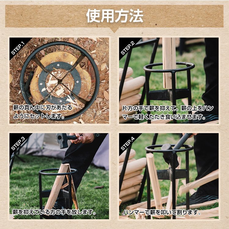 ■薪割り台に薪を設置し、ハンマーで叩くだけ