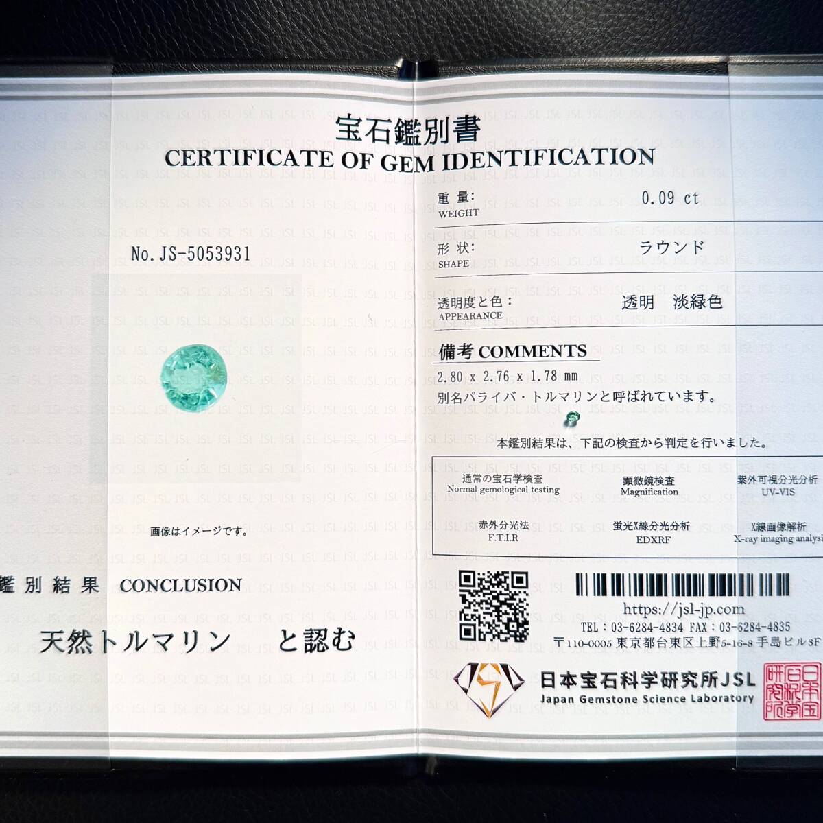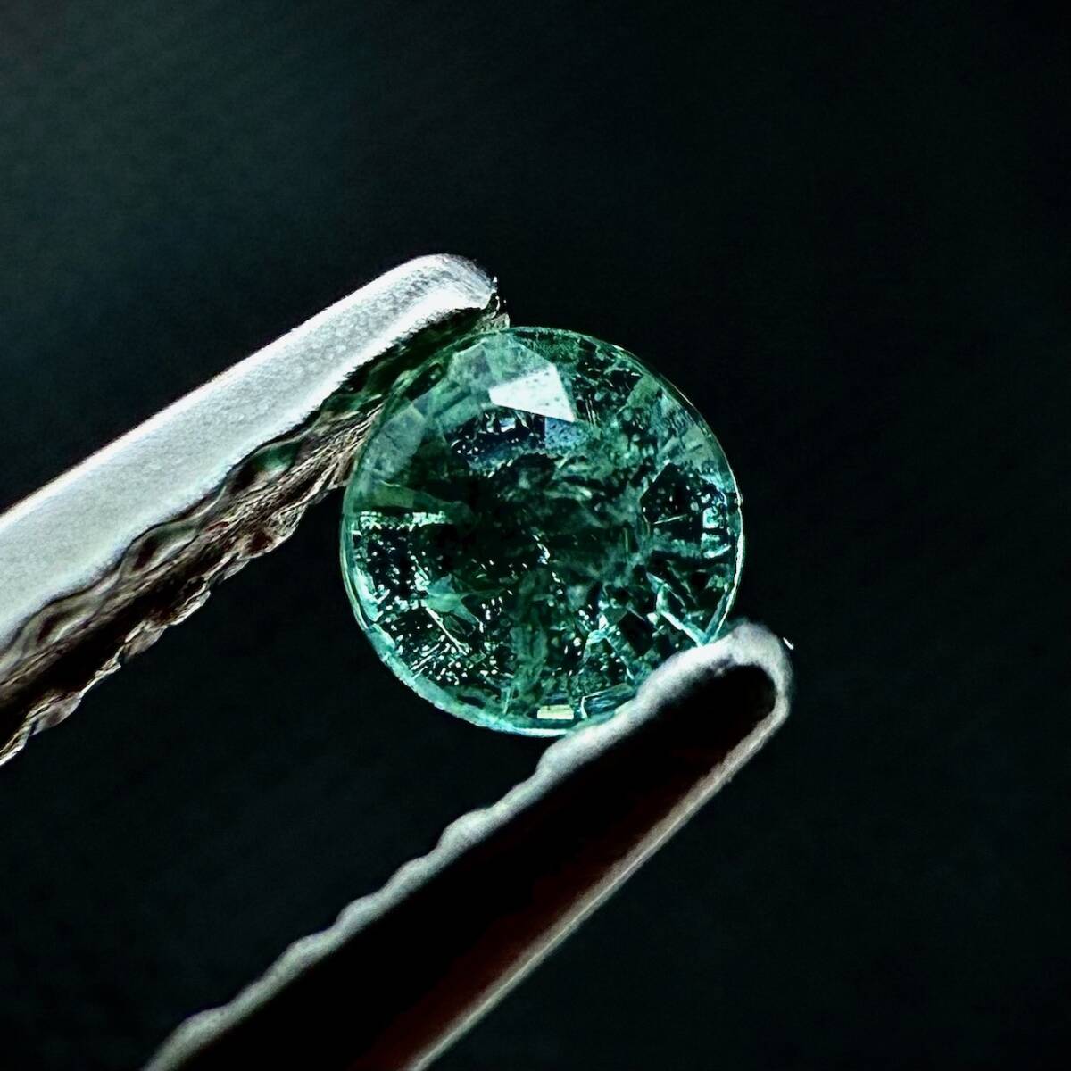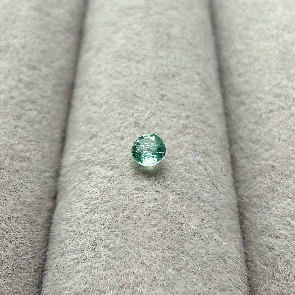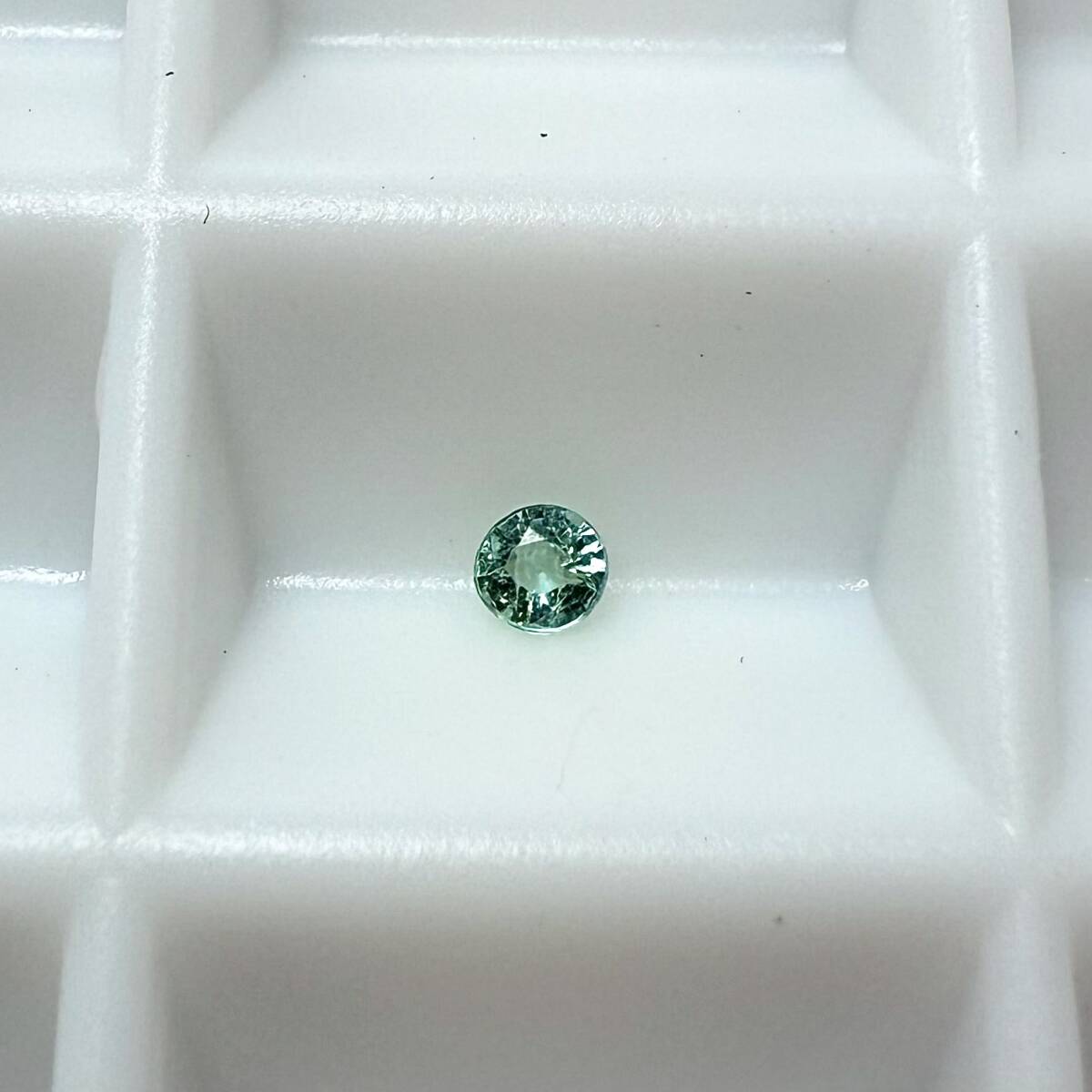 ライトブルーグリーンの透明なパライバトルマリン。ラウンドカットの瑞々しい小粒ルースです。