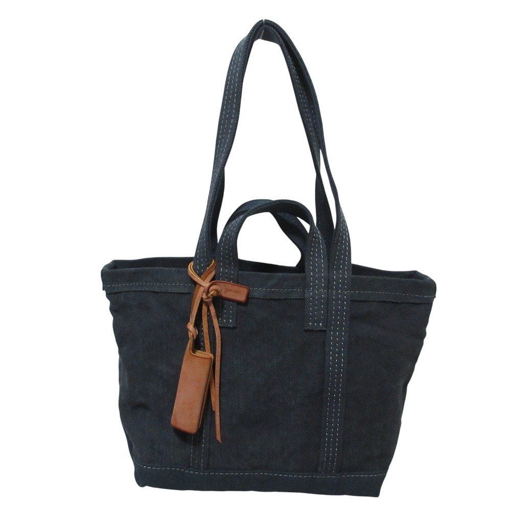 美品 genten ゲンテン WEB限定カラー 帆布 セルビッジ 2way トートバッグ2 中 ネイビー