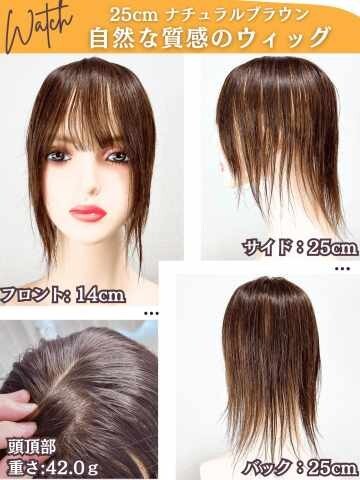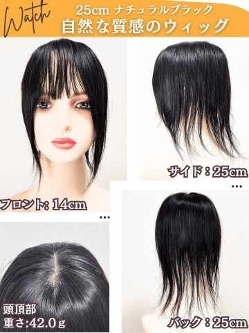【分け目自由自在】A特徴:【ナチュラルウィッグ 25cm】はつむじや頭頂部周りの薄毛や生え際の白髪にお悩みの、ウィッグ、付け毛、カツラ初心者に最適の商品。総手植えでかつ二重構造引き抜き式により、より自然なつむじへ。高級人毛100%の為、ヘアアイロン、ヘアカット、シャンプーも使用可