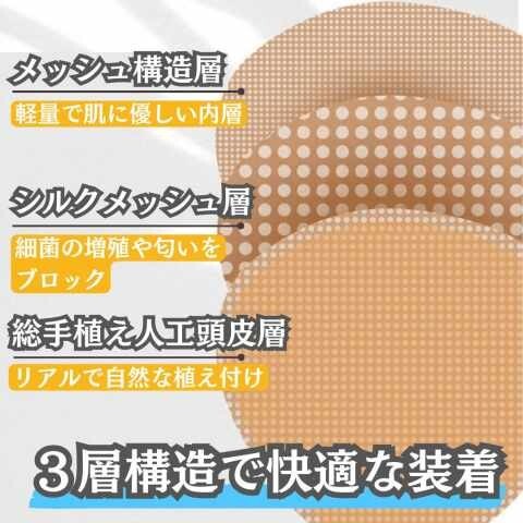 【空気透過性UP&選べるベース】Gベース: 強力固定ピンは3つで、より自然なつけ心地を再現致しました。地肌ソフトネットを用いている為、、あらゆる頭の形にフィットします。また地肌ソフトネットは空気透過性がとてもよく、快適、通気性、蒸し暑くない等の利点があります。またお悩みの範囲に合わせてベースを9×14cm, 12×13cm, 13×15cmの中から選ぶことが出来ます