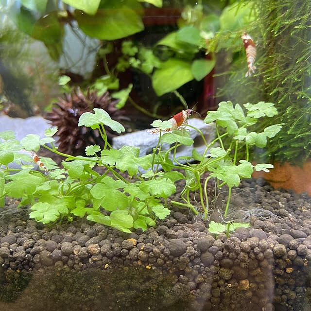 切れ込みの入る丸い葉をヒュルヒュルと伸ばす水草で 可愛らしい姿と横に這って伸びる姿からとても人気のある水草です