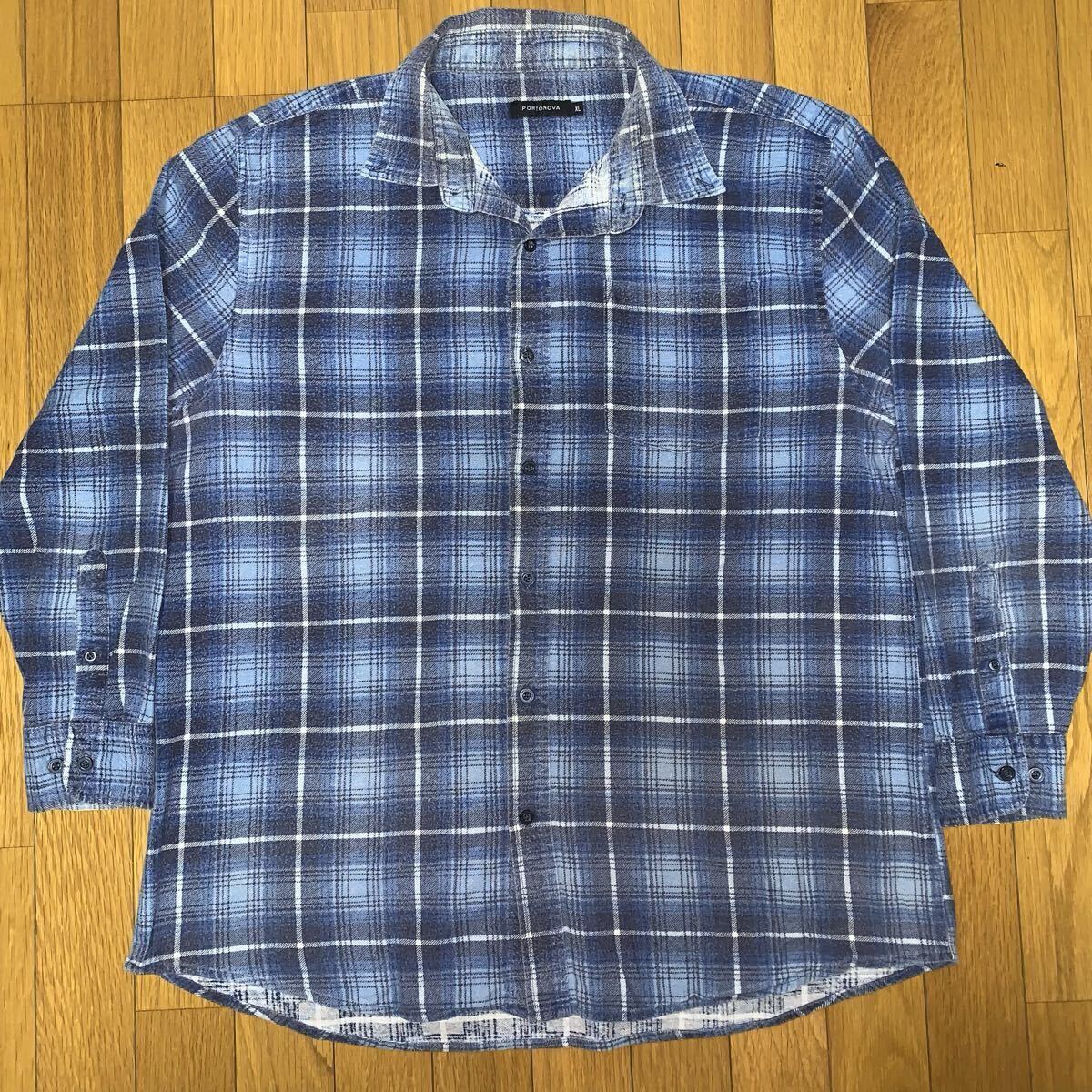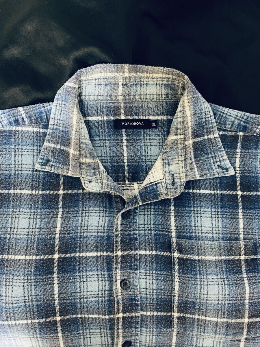 70's オンブレチェック プリントネル シャツ