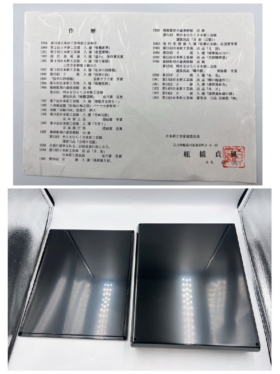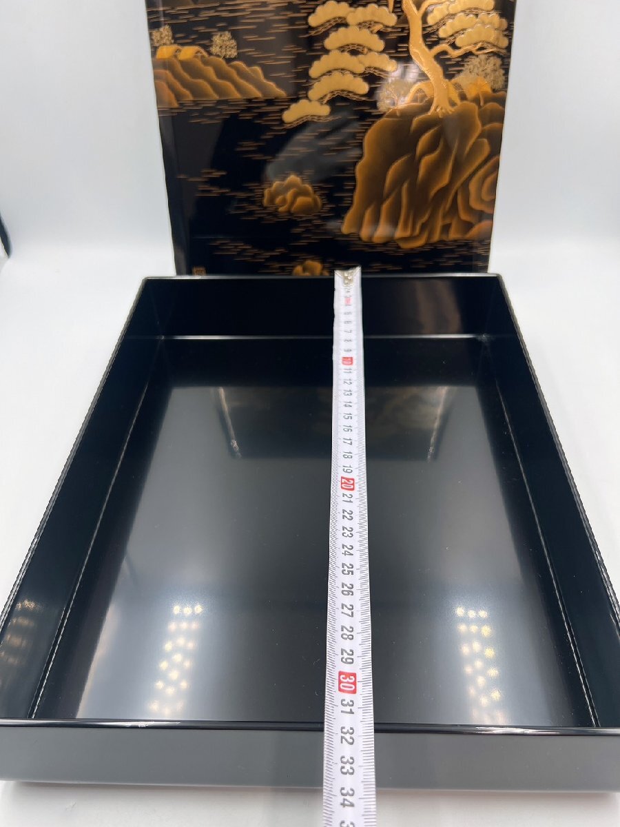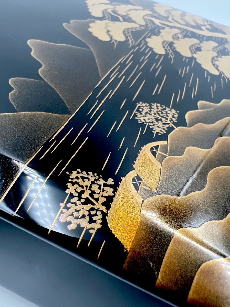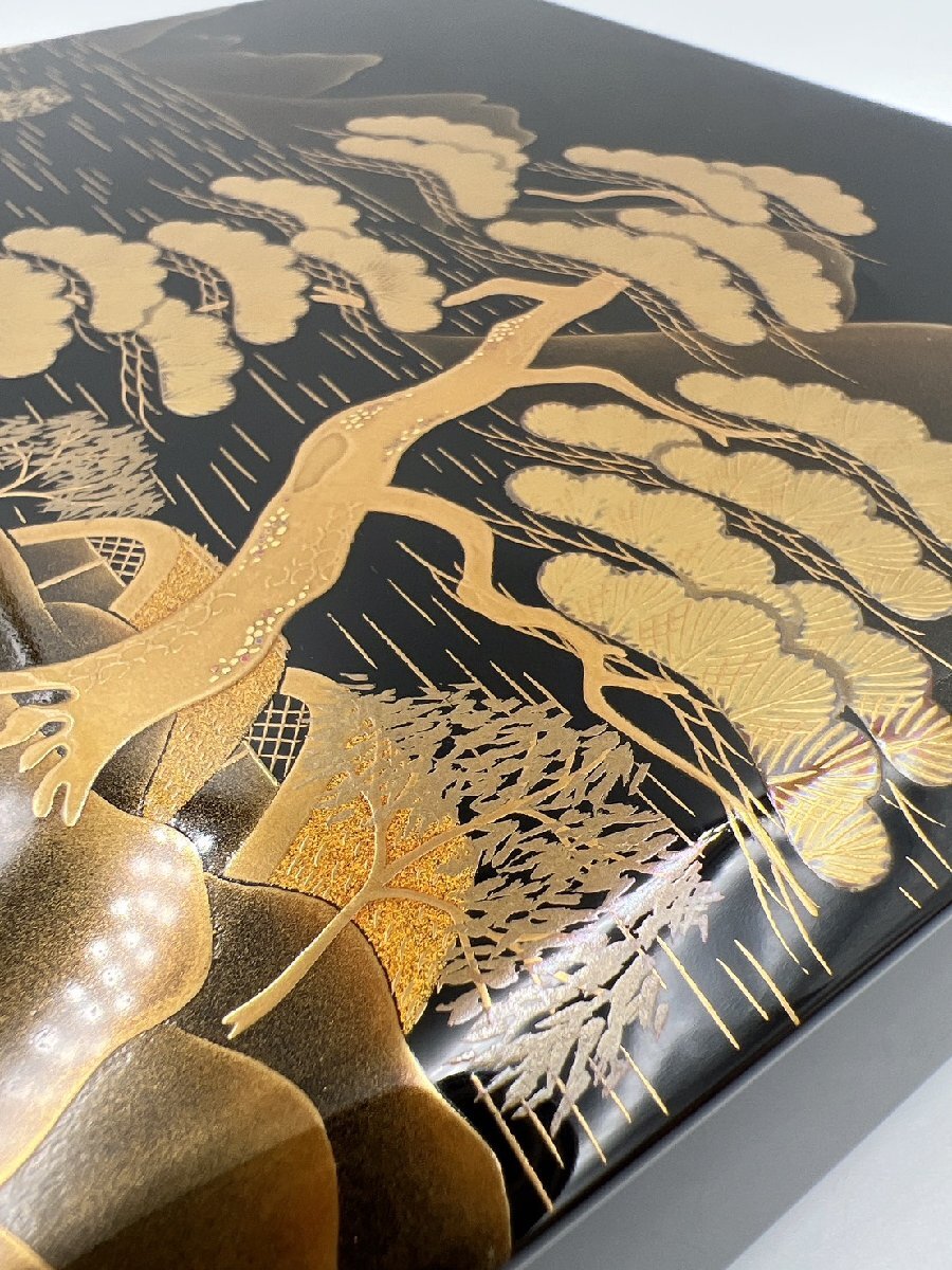 1円 高級 輪島塗 貞風 文箱 在銘 蒔絵師 組橋貞風 山/松/海/画 未使用 共箱 未使用保管品【AN010】