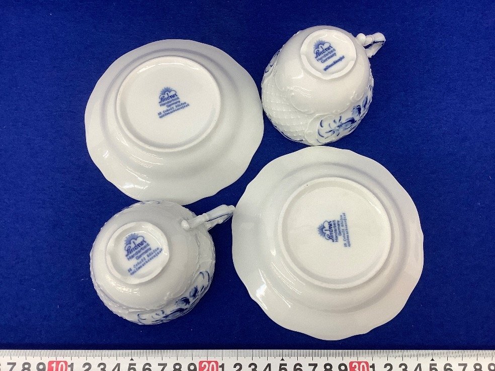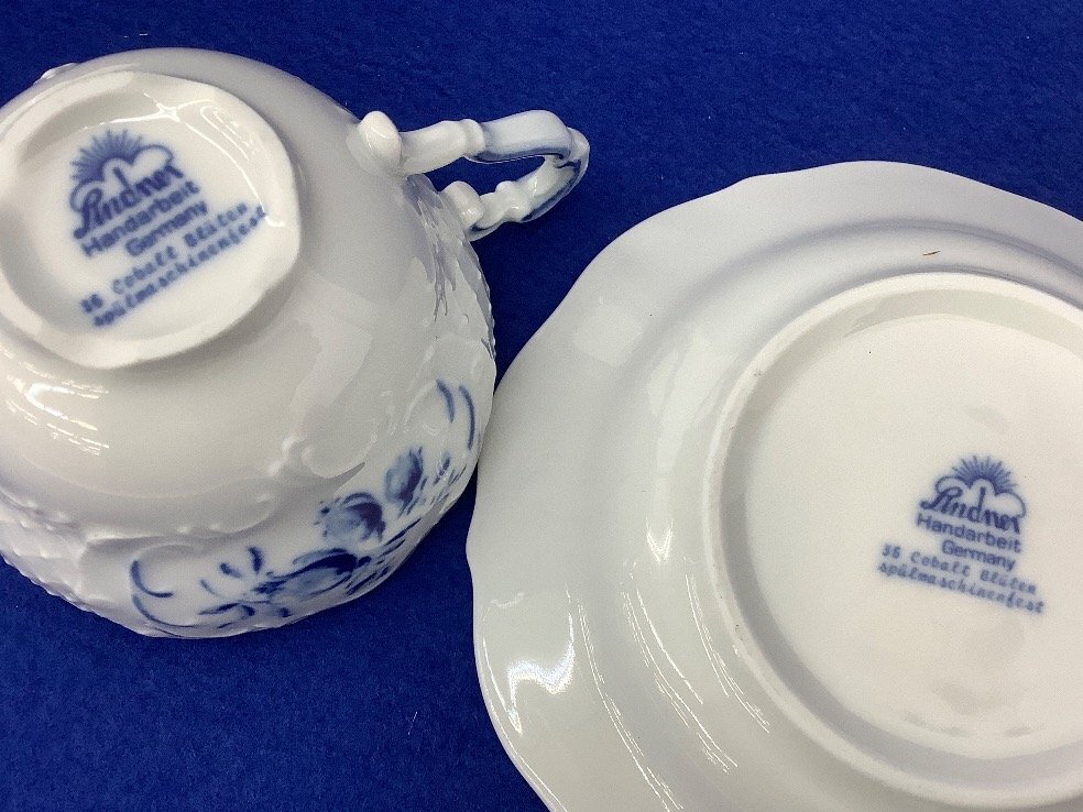 リンドナー カップ&ソーサー/コバルトフラワー/ティーカップ 2客セット ACB 中古品
