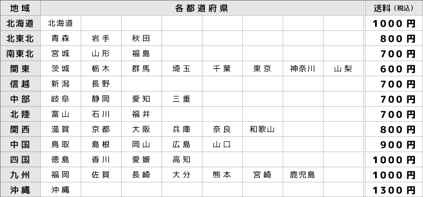 | ● 送料や配送会社などについての説明です。 | |||||||||||||