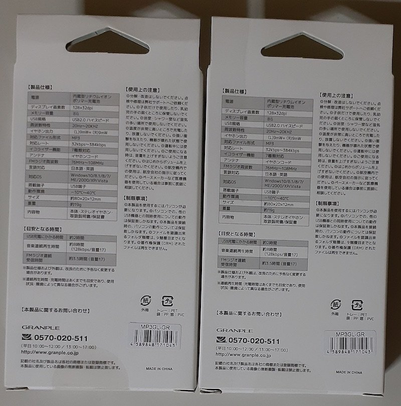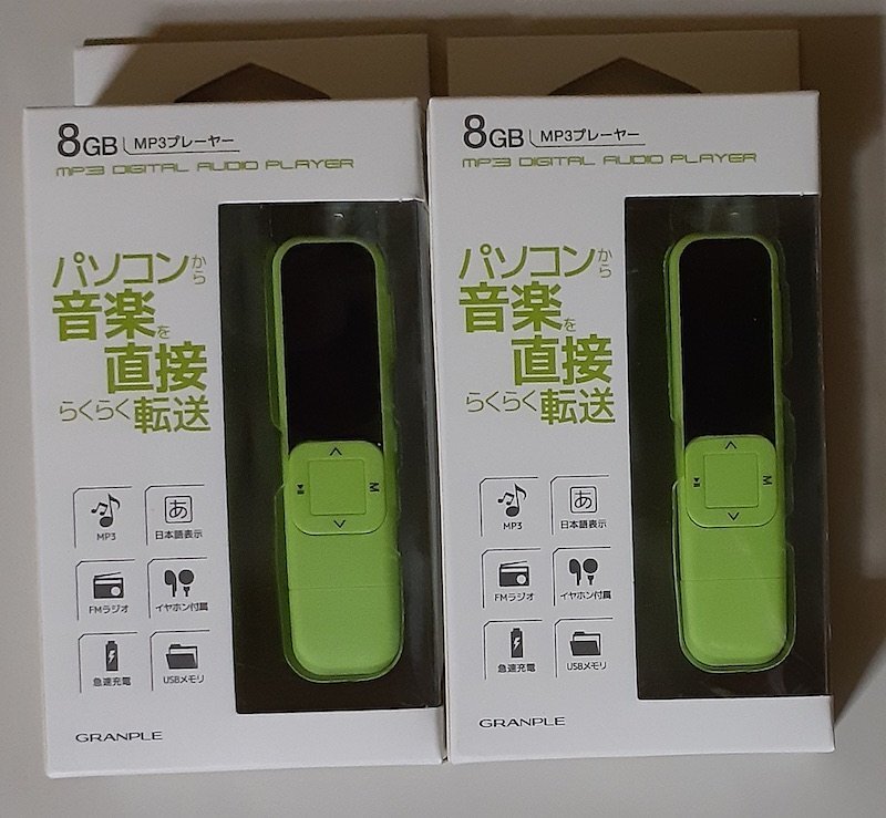 6773 未使用未開封 2個 FMラジオ付ポータブルオーディオプレーヤー MP3GL-GR 8GB グリーン GRANPLE パソコンから音楽を直接らくらく転送