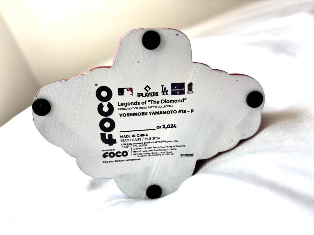 こちらはロサンゼルスドジャースの本拠地のドジャースタジアムで2024体限定で発売されていた、山本由伸選手のバブルヘッドです。ワールドシリーズチャンピオンになった2024年を記念して、2024個期間限定で発売された人形です。帽子の横には"World Series"のロゴがあるように、優勝の瞬間を完璧に再現しております。人形の大きさは縦6cm/横10cm /高さ19cmとなっており、トロフィーを抱えたデザインとなっております。