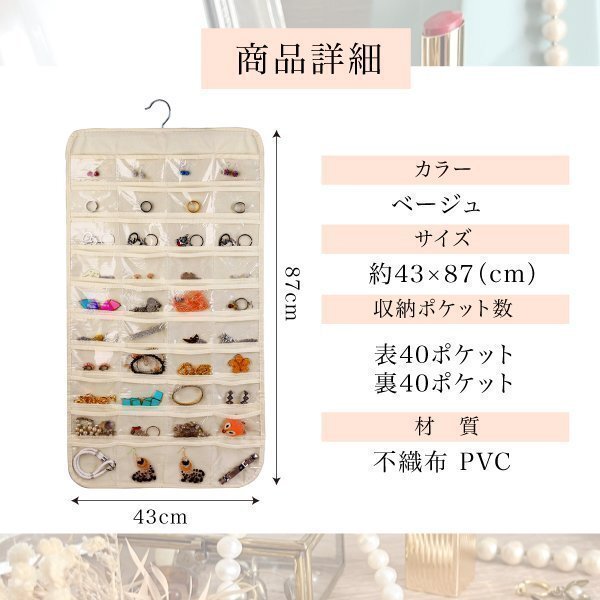 アクセサリー 収納 ポケット 大容量 ウォールポケット クローゼット 吊り下げ式 ポケット収納 ハンガー 両面 80ポケット おしゃれ 壁掛け