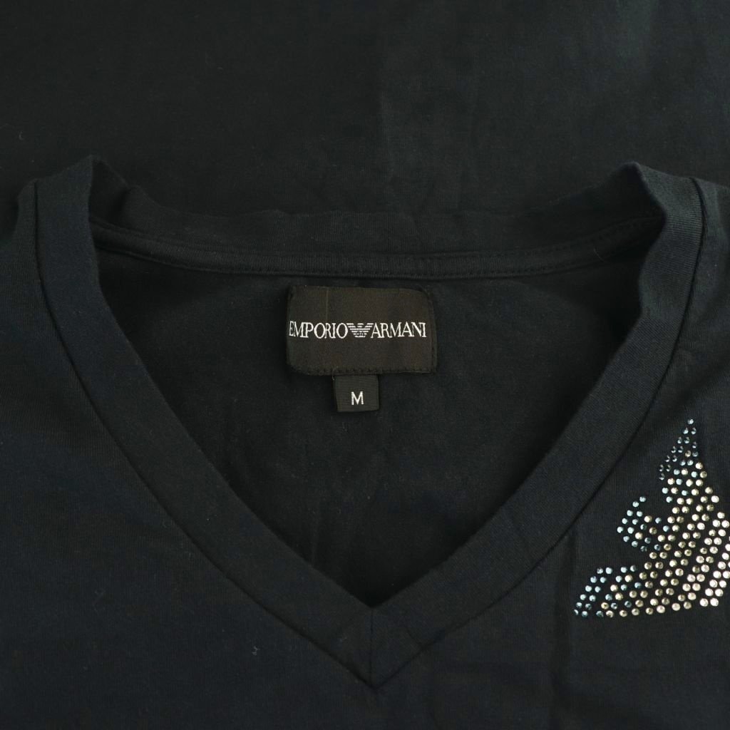 エンポリオアルマーニ EMPORIO ARMANI Tシャツ カットソー 半袖 ラインストーン M ブラック /ES メンズ