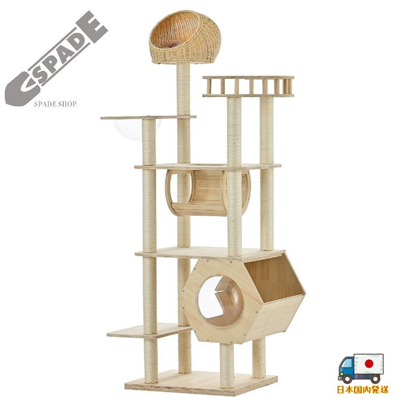 【国内発送】キャットタワー 猫タワー ネコタワー 多頭飼い 高さ183cm 宇宙船 隠れ家 爪とぎポール トンネル付き 据え置き型