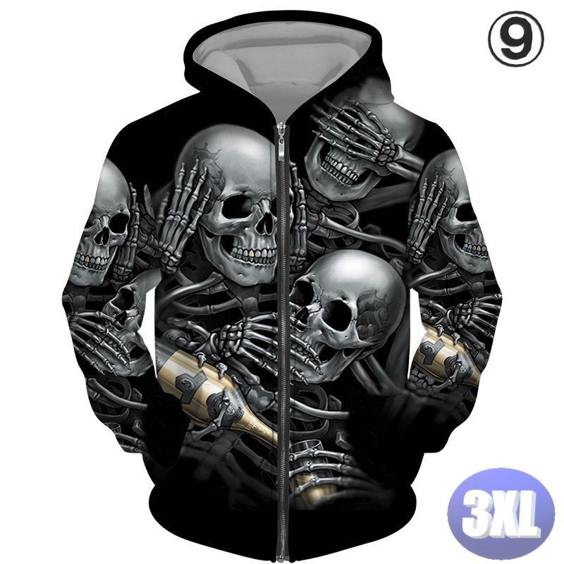 フード付き ドクロパーカー ジップアップ カラー9 3XL トレーナー アウター 防寒 n717