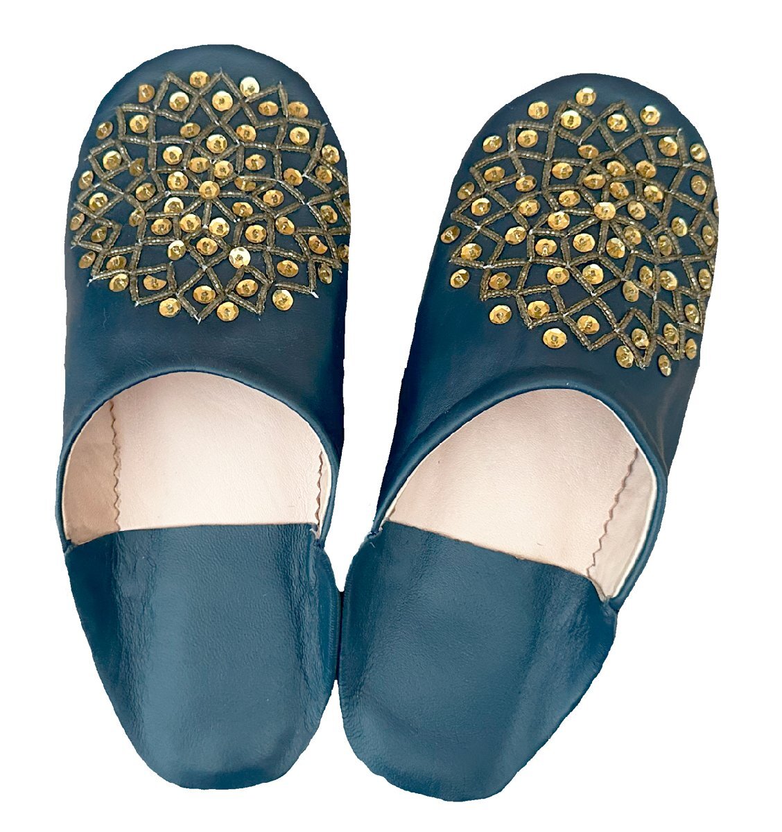 《ネイビー×ゴールド×23cm》スリッパ バブーシュ ルームシューズ 紺 モロッコ レディース 室内トイレ おしゃれ 夏 冬
